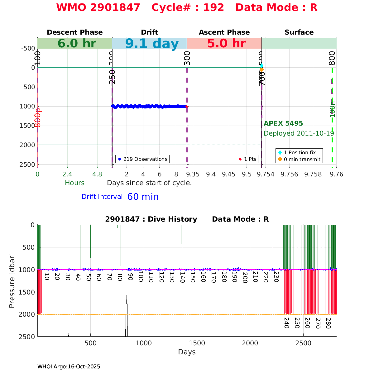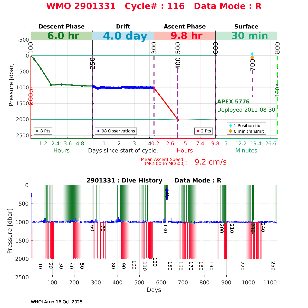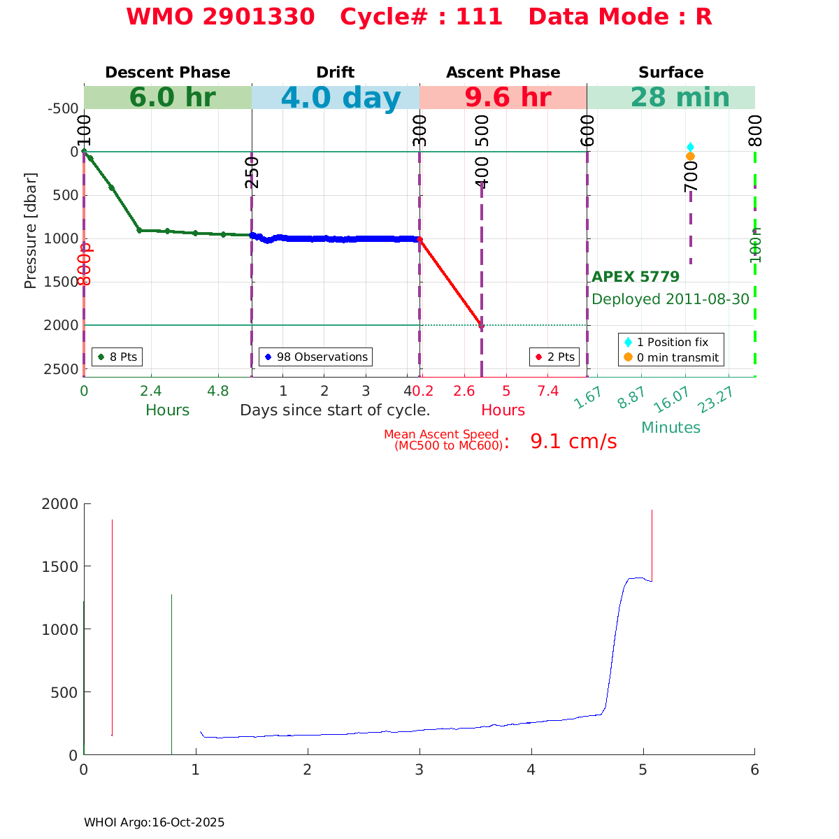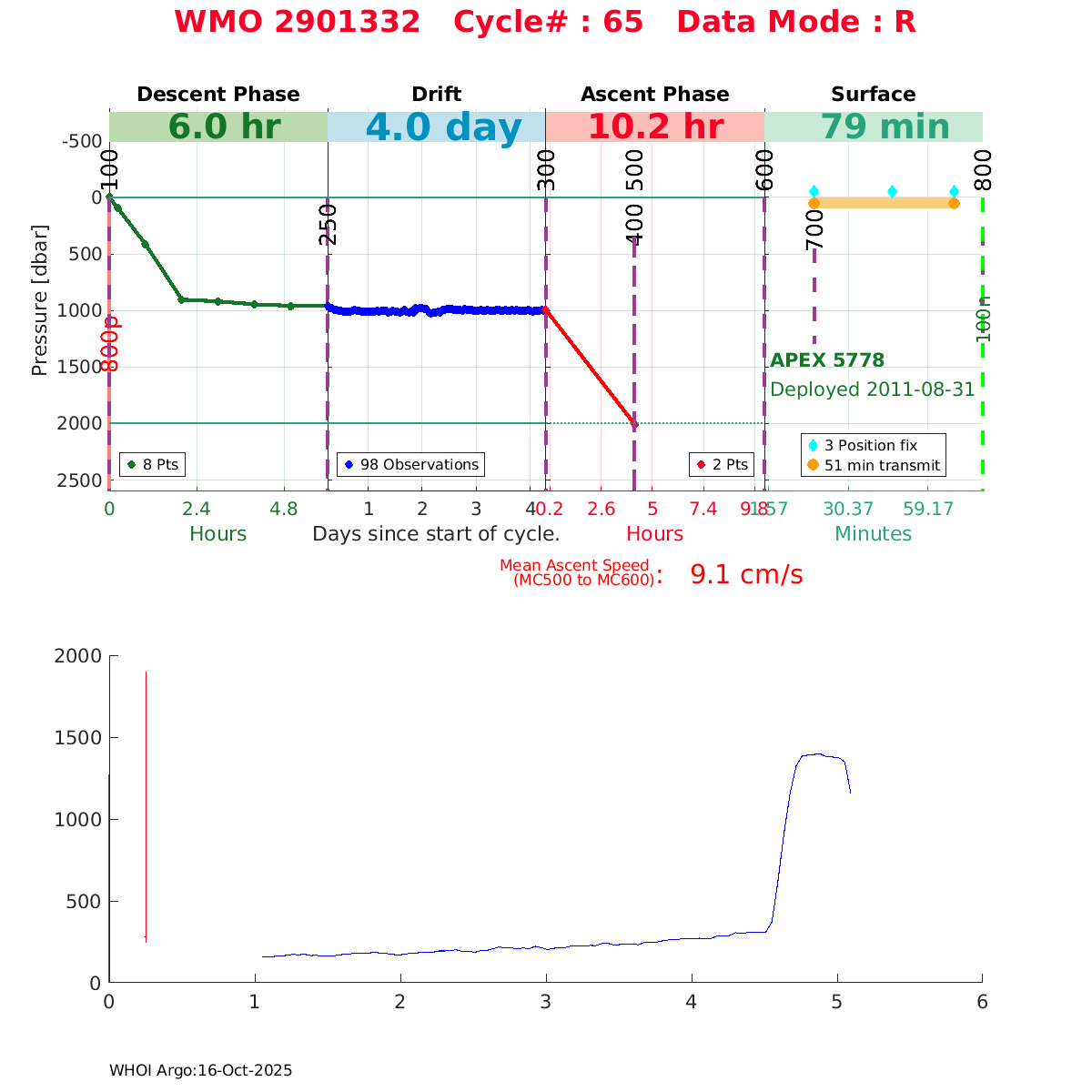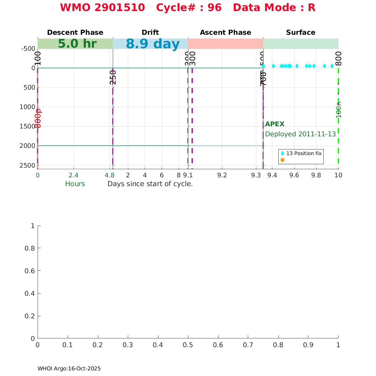 | WMO: #2901510 DAC: csio PI: JIANPING XU APEX: # SBE41: #5382 2900PSIA: #2082405 Altimeter Comparison (IFREMER) EuroArgo Link | ![]() |