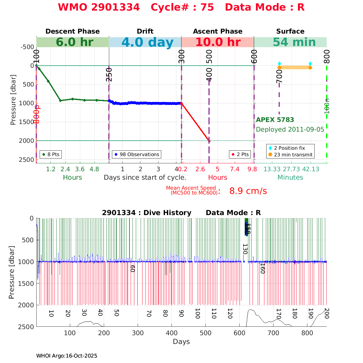| WMO: #2901886 DAC: bodc PI: Jon Turton APEX: #4606 KISTLER_2900PSIA: #2077400 SBE41: #4865 Altimeter Comparison (IFREMER) EuroArgo Link | ![]() |