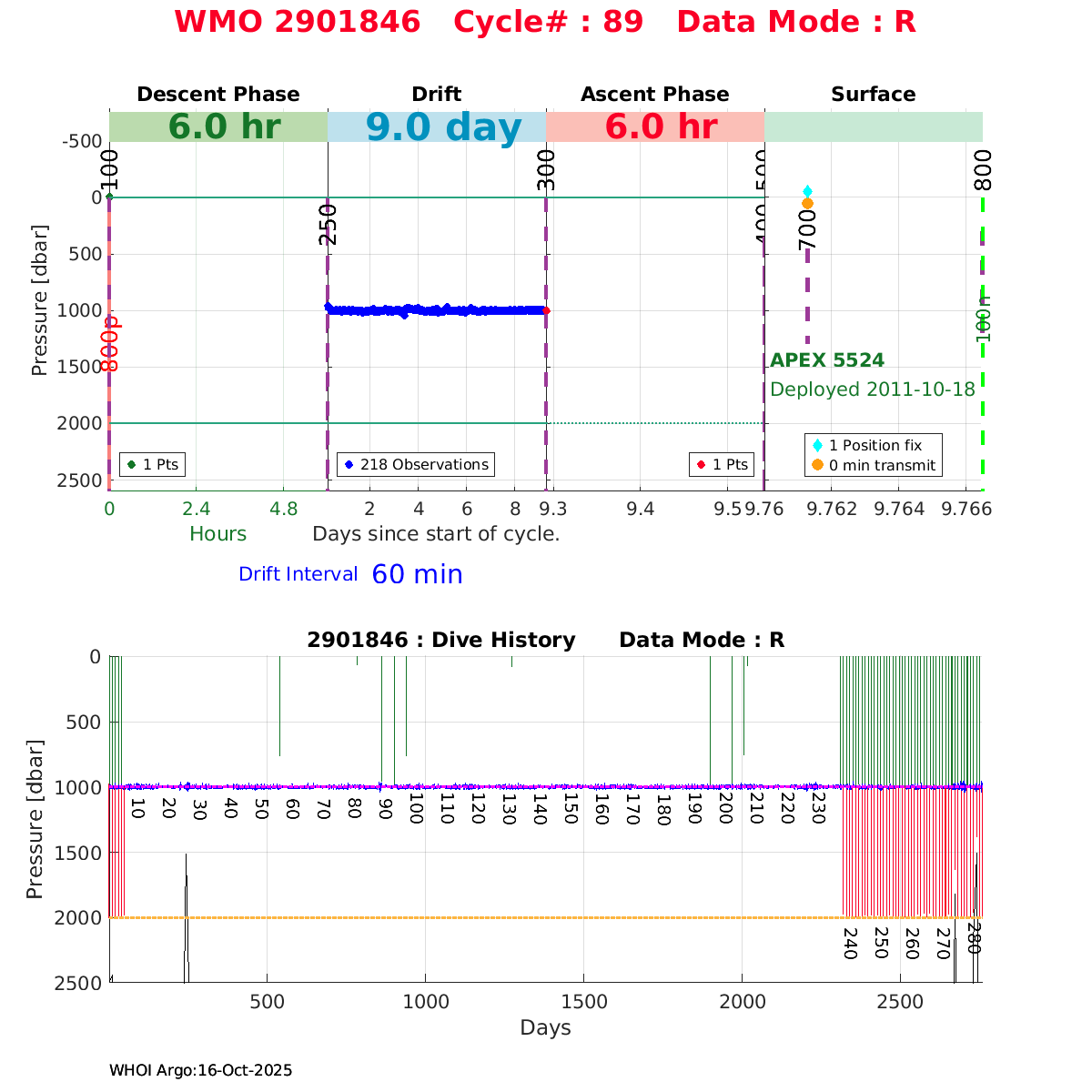 | WMO: #2901890 DAC: bodc PI: Jon Turton APEX: #5021 KISTLER_2900PSIA: #2077418 SBE41: #4897 Altimeter Comparison (IFREMER) EuroArgo Link | ![]() |