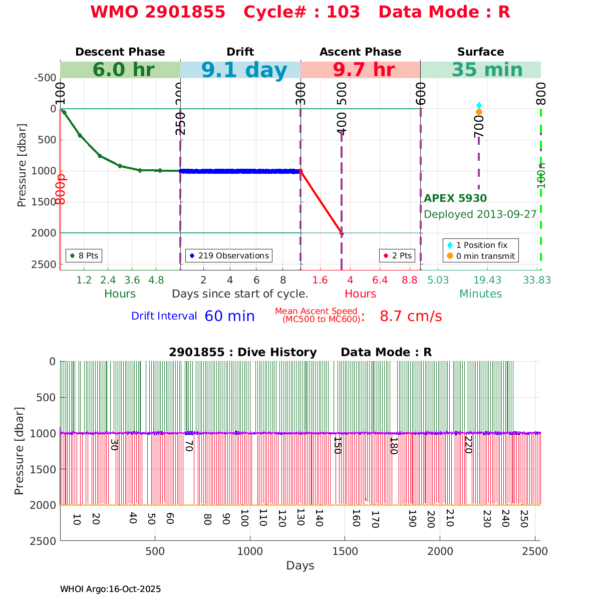 | WMO: #2901854 DAC: csiro PI: Susan Wijffels APEX: #5931 SBE41CP_V2: #3810 DRUCK: #3255791 Altimeter Comparison (IFREMER) EuroArgo Link | ![]() |