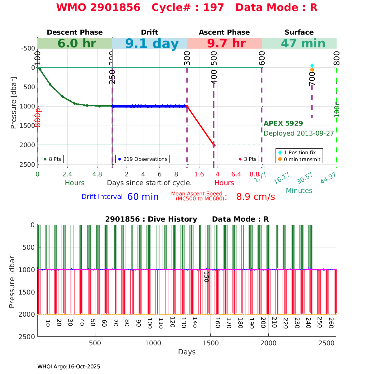 | WMO: #2901858 DAC: csiro PI: Susan Wijffels APEX: #3974 SBE41_V3: #4281 DRUCK: #2381151 Altimeter Comparison (IFREMER) EuroArgo Link | ![]() |