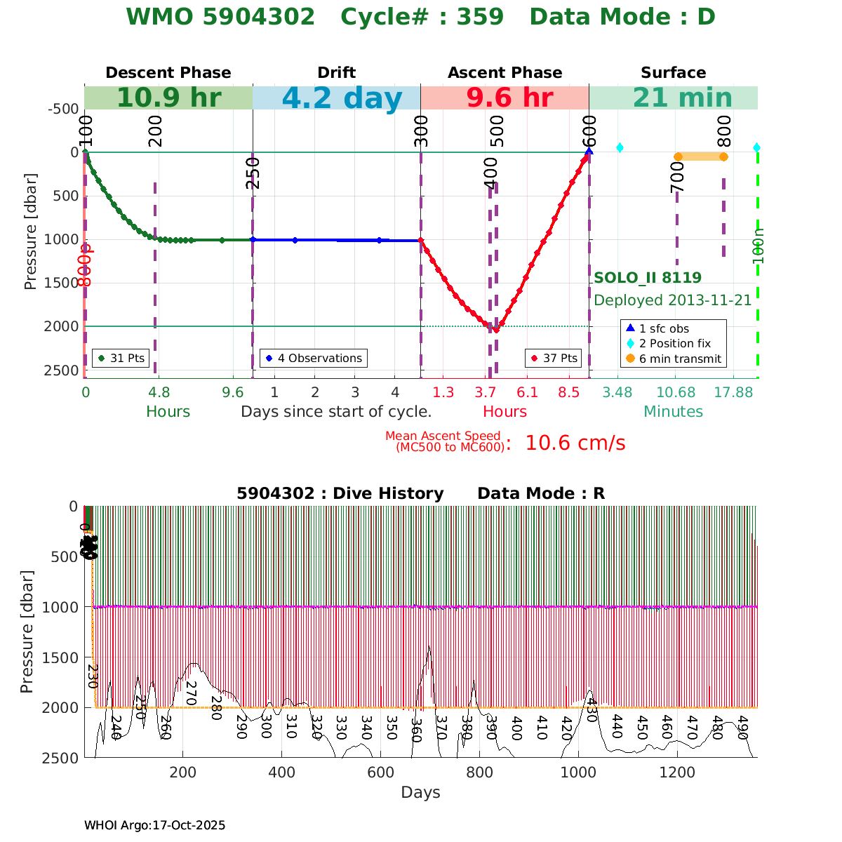 | WMO: #5904302 DAC: aoml PI: Dan RUDNICK SOLO_II: #8119 DRUCK_2900PSIA: #3503228 SBE41CP: #4402 Altimeter Comparison (IFREMER) EuroArgo Link | ![]() |