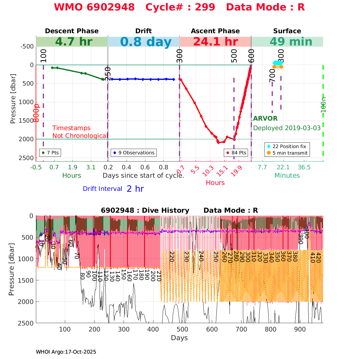 | WMO: #2902777 DAC: csio PI: FENG ZHOU PROVOR: # SBE41CP_V7.2.5: #12106 DRUCK_2900PSIA: #11292295 Altimeter Comparison (IFREMER) EuroArgo Link | ![]() |