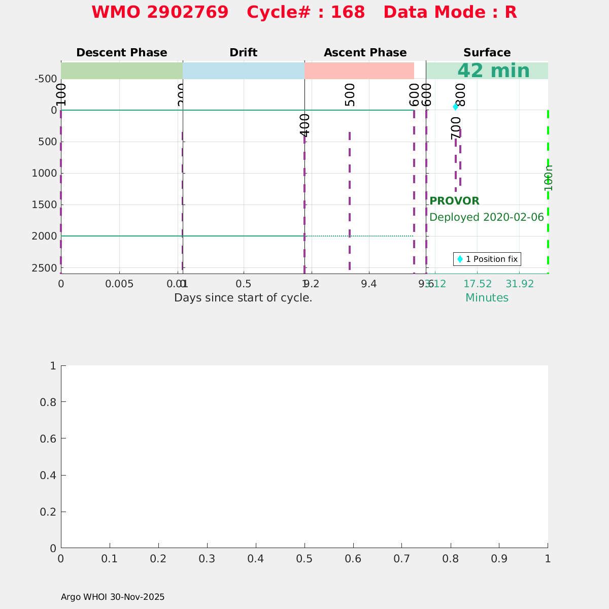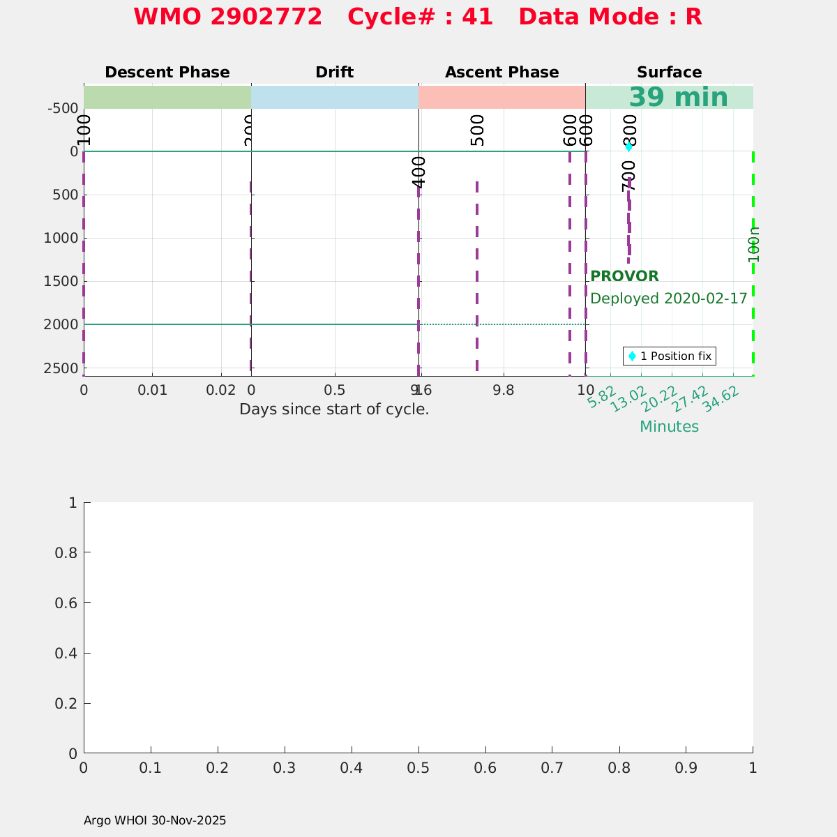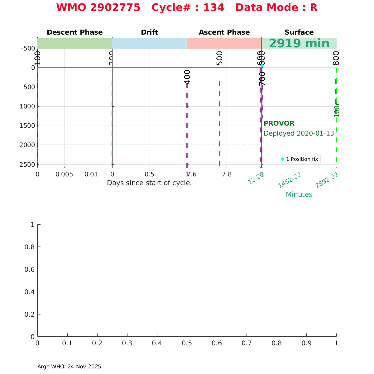 | WMO: #2902775 DAC: csio PI: FENG ZHOU PROVOR: # SBE41CP_V7.2.5: #12105 DRUCK_2900PSIA: #11292288 Altimeter Comparison (IFREMER) EuroArgo Link | ![]() |