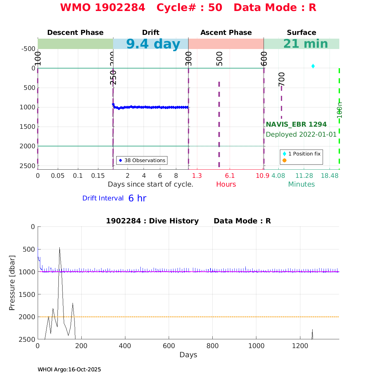 | WMO: #1902284 DAC: aoml PI: GREGORY C. JOHNSON NAVIS_EBR: #1294 SBE41CP: #13631 DRUCK_2900PSIA: #11692786 Altimeter Comparison (IFREMER) EuroArgo Link | ![]() |
