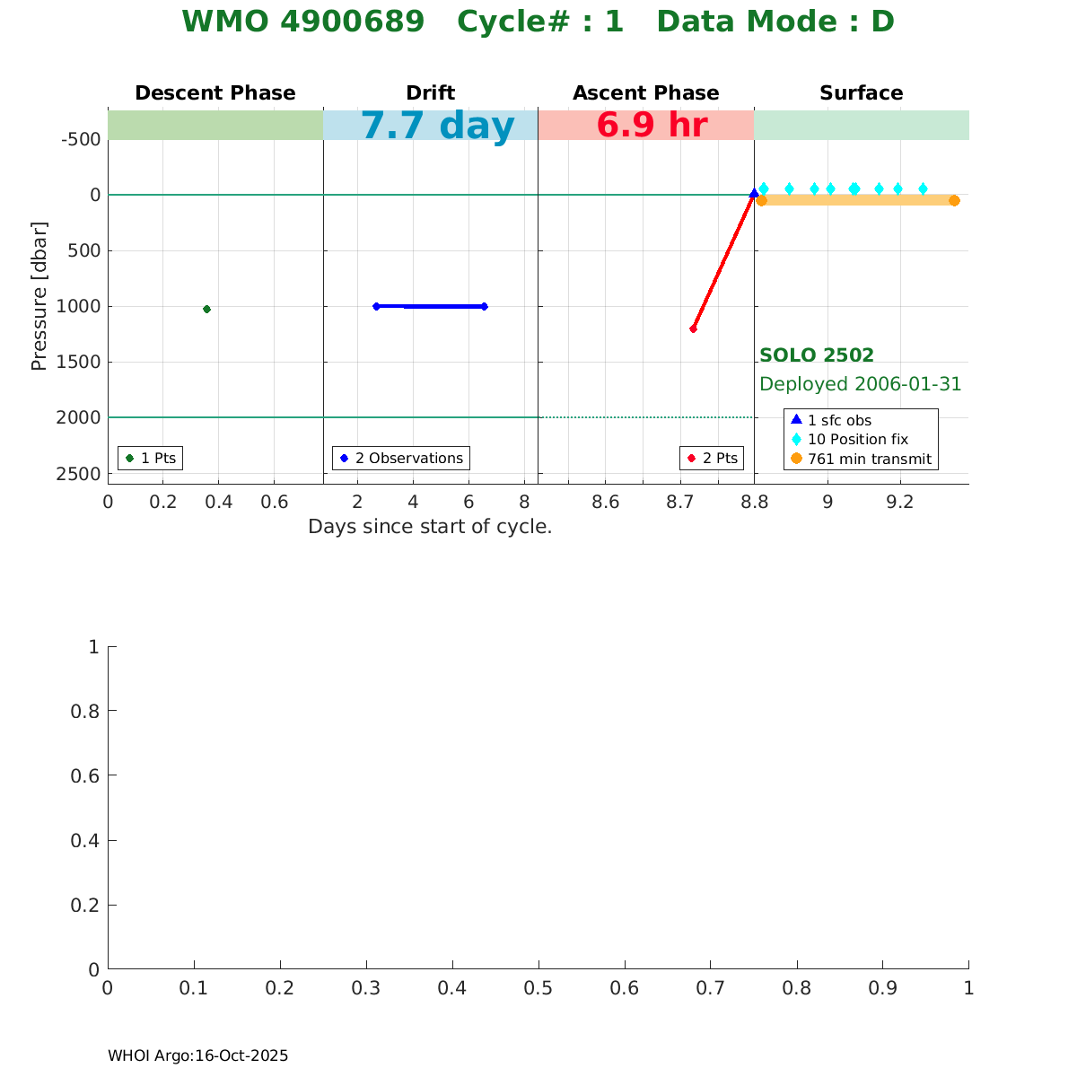 | WMO: #5901214 DAC: jma PI: JAMSTEC NINJA: #7248 DRUCK: #4638 SBE41: #1162 Altimeter Comparison (IFREMER) EuroArgo Link | ![]() |