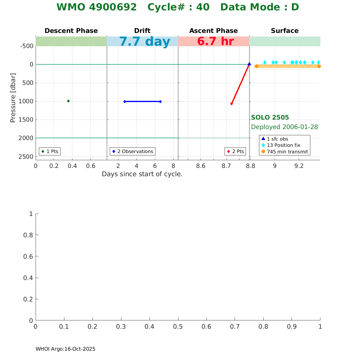 | WMO: #4900891 DAC: jma PI: JAMSTEC APEX: #2427 DRUCK: #8578 SBE41: #2506 Altimeter Comparison (IFREMER) EuroArgo Link | ![]() |