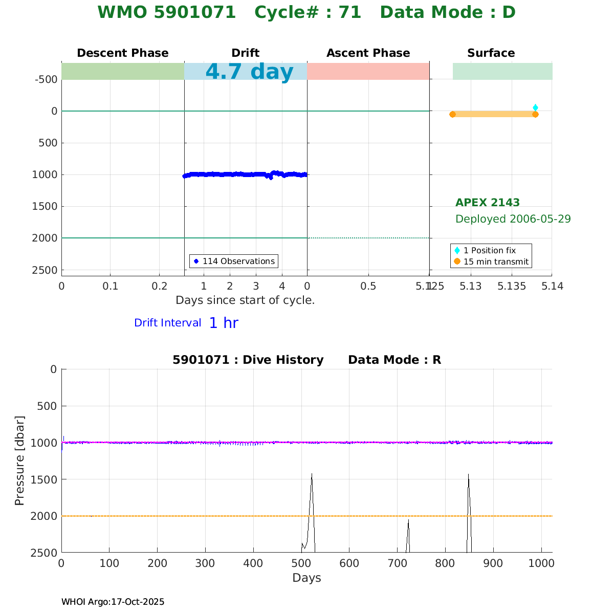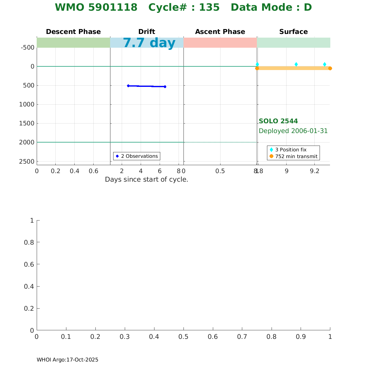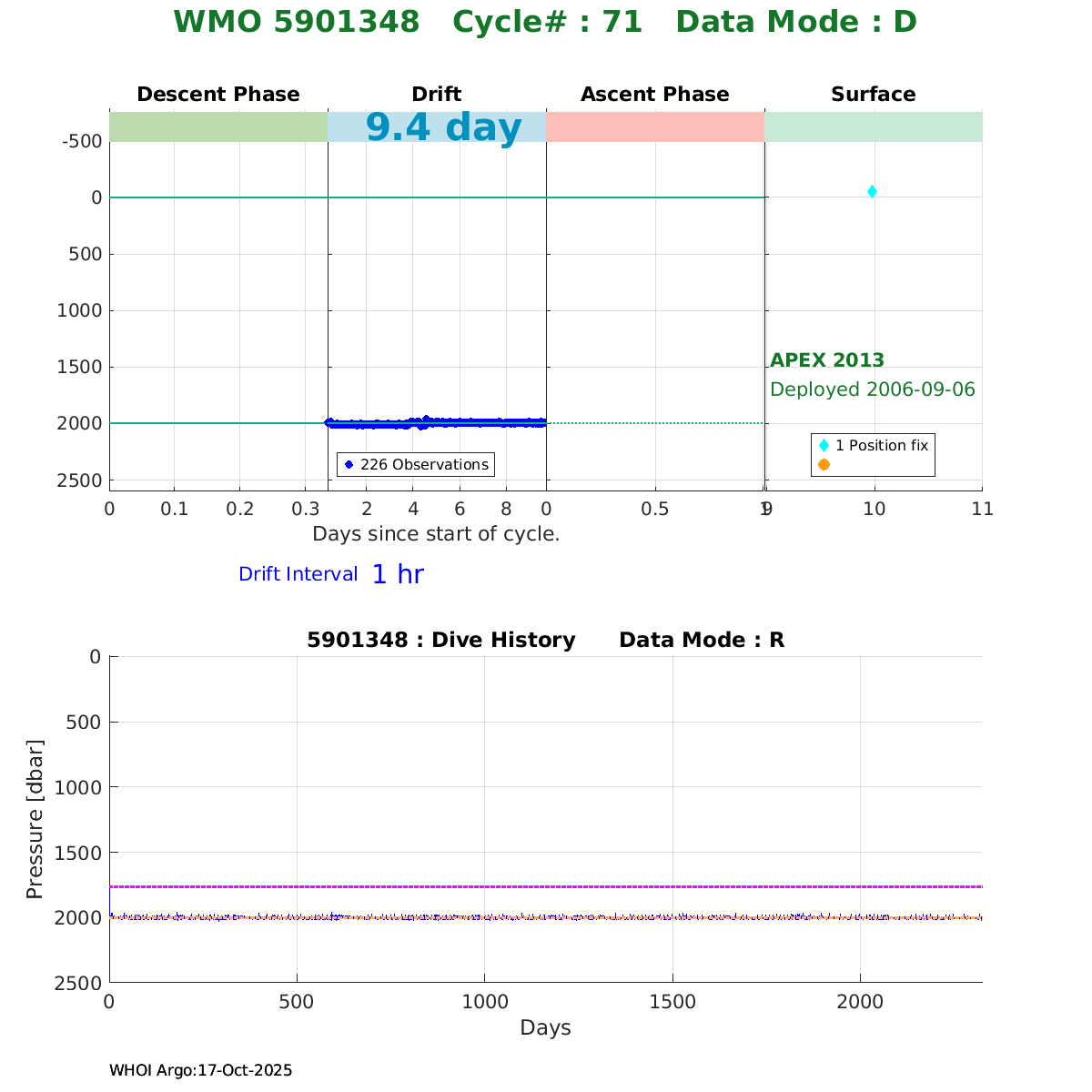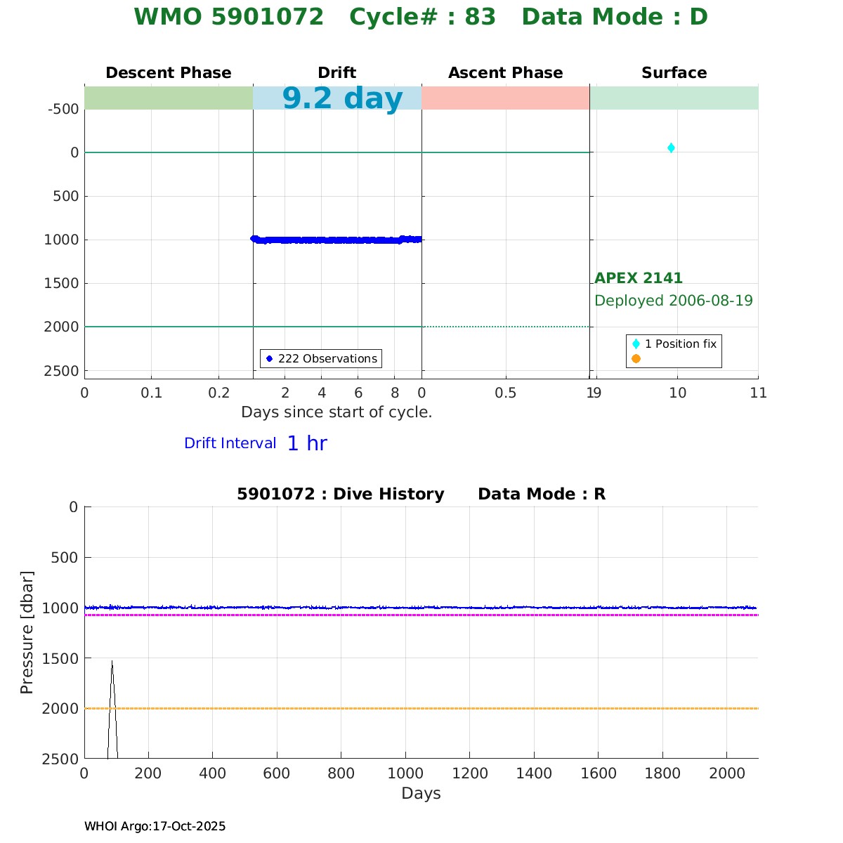 | WMO: #5901361 DAC: aoml PI: STEPHEN RISER APEX: #2873 SBE41: #2893 DRUCK_2900PSIA: #10479 Altimeter Comparison (IFREMER) EuroArgo Link | ![]() |