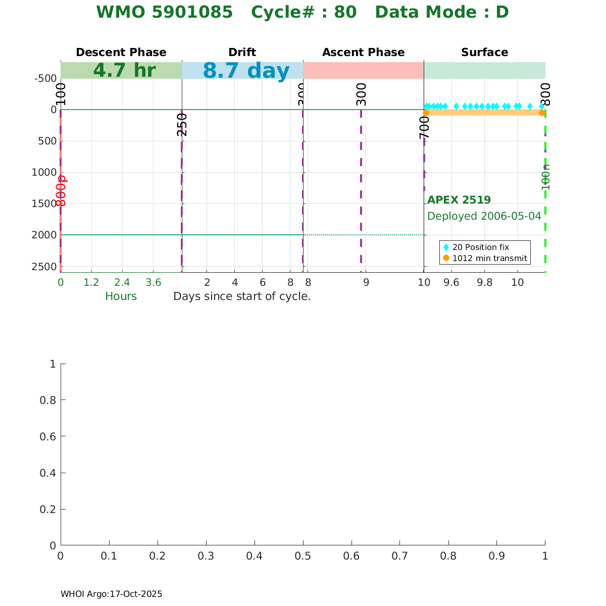 | WMO: #5901085 DAC: aoml PI: STEPHEN RISER APEX: #2519 SBE41: #2608 DRUCK_2900PSIA: #9087 Altimeter Comparison (IFREMER) EuroArgo Link | ![]() |