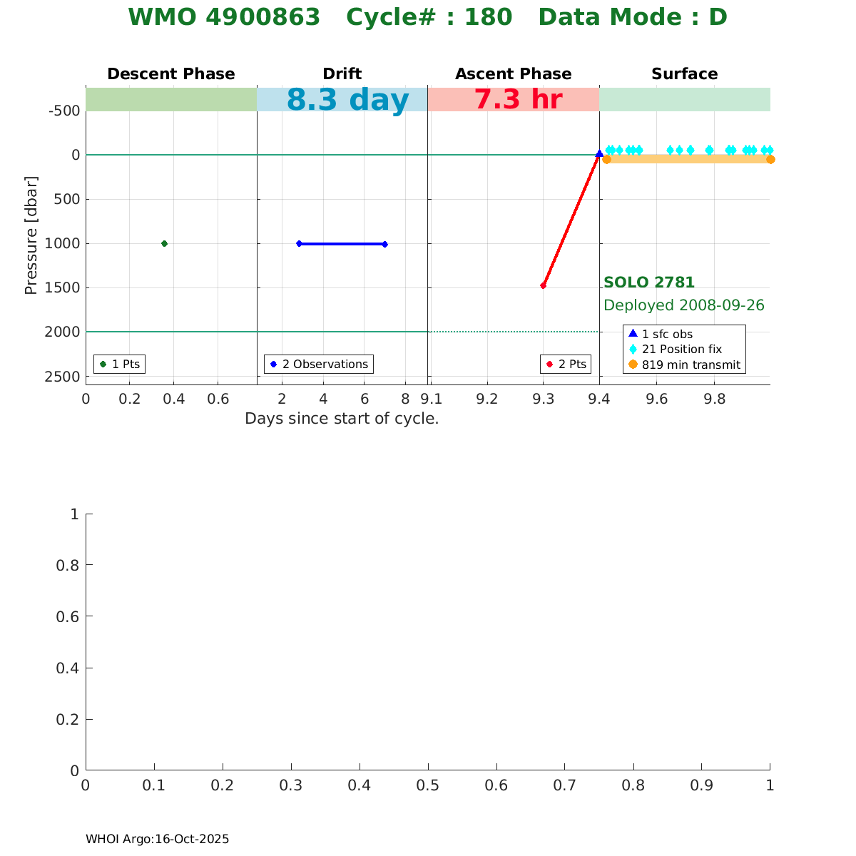 | WMO: #4900863 DAC: aoml PI: DEAN ROEMMICH SOLO: #2781 DRUCK_2900PSIA: #2619304 SBE41CP_V2: #2234 Altimeter Comparison (IFREMER) EuroArgo Link | ![]() |