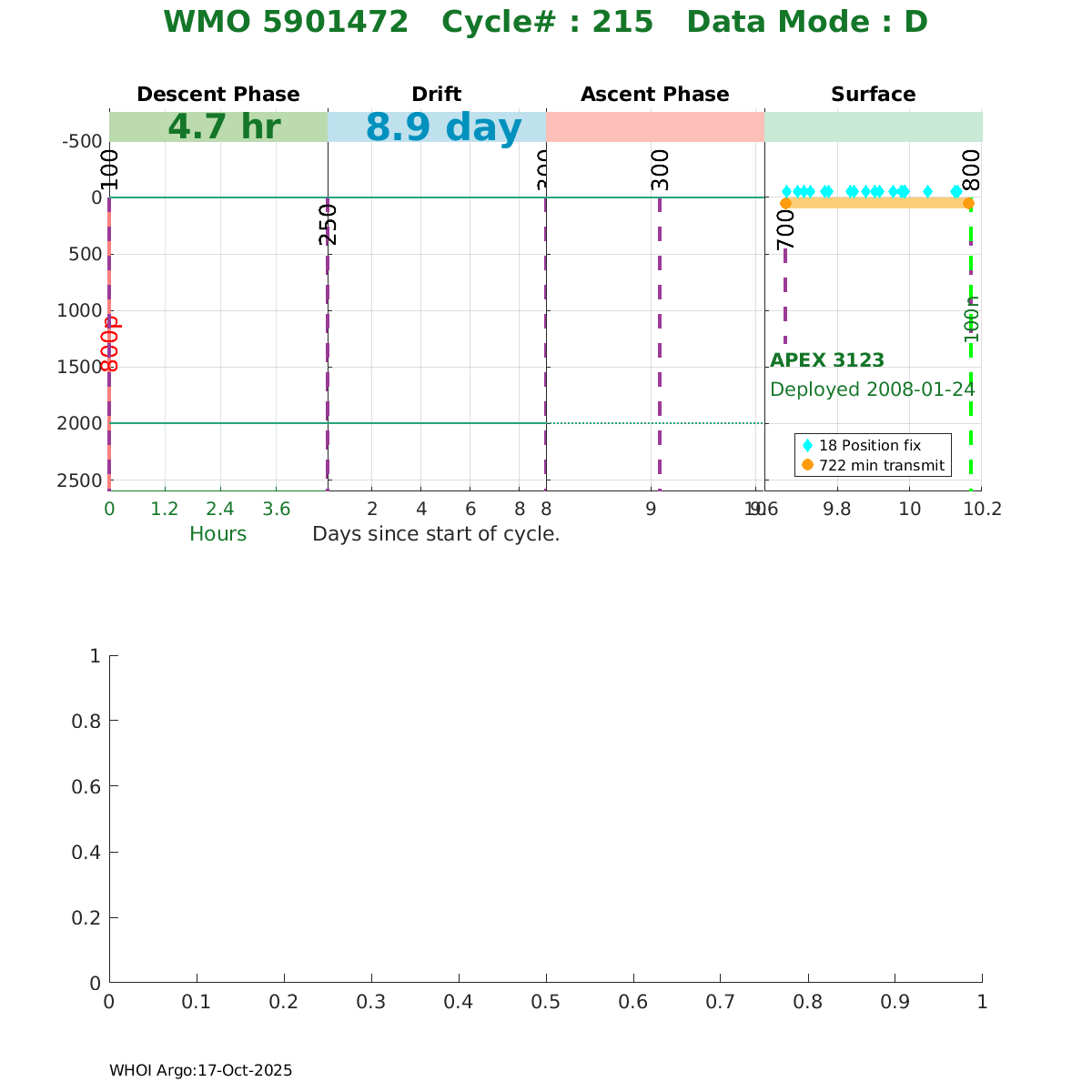 | WMO: #4900924 DAC: jma PI: JAMSTEC APEX: #3538 DRUCK: #2465250 SBE41: #3574 Altimeter Comparison (IFREMER) EuroArgo Link | ![]() |