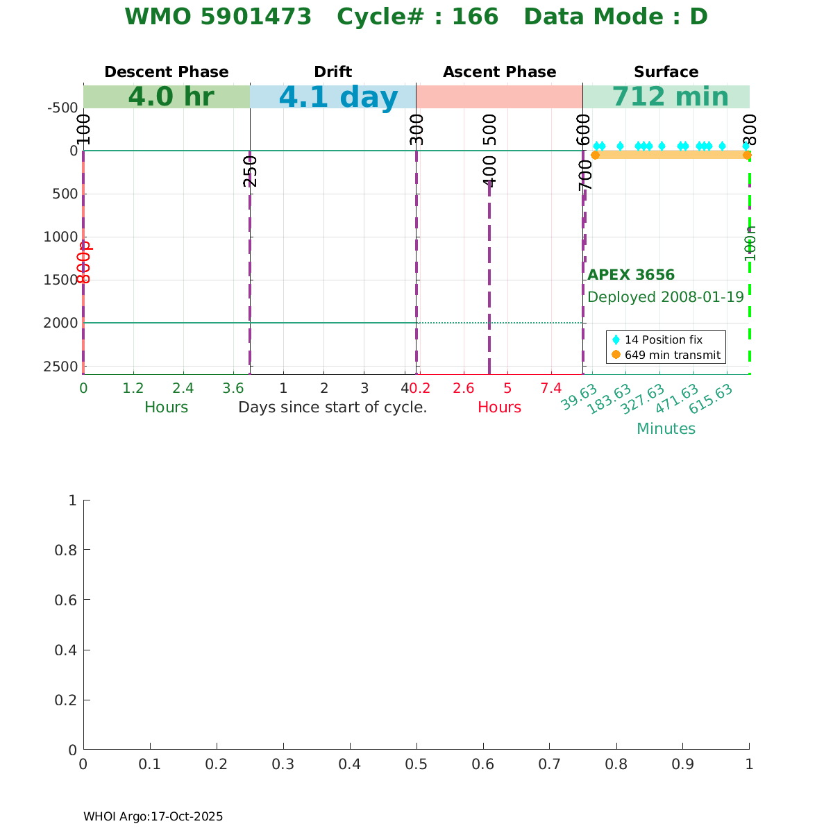 | WMO: #5901473 DAC: aoml PI: STEPHEN RISER APEX: #3656 SBE41: #3648 DRUCK_2900PSIA: #2471049 Altimeter Comparison (IFREMER) EuroArgo Link | ![]() |
