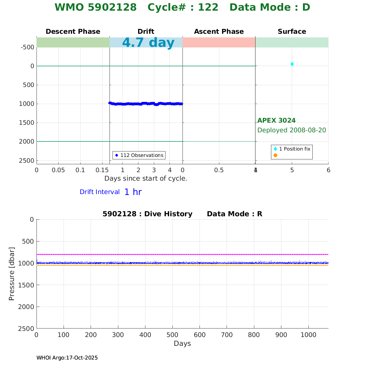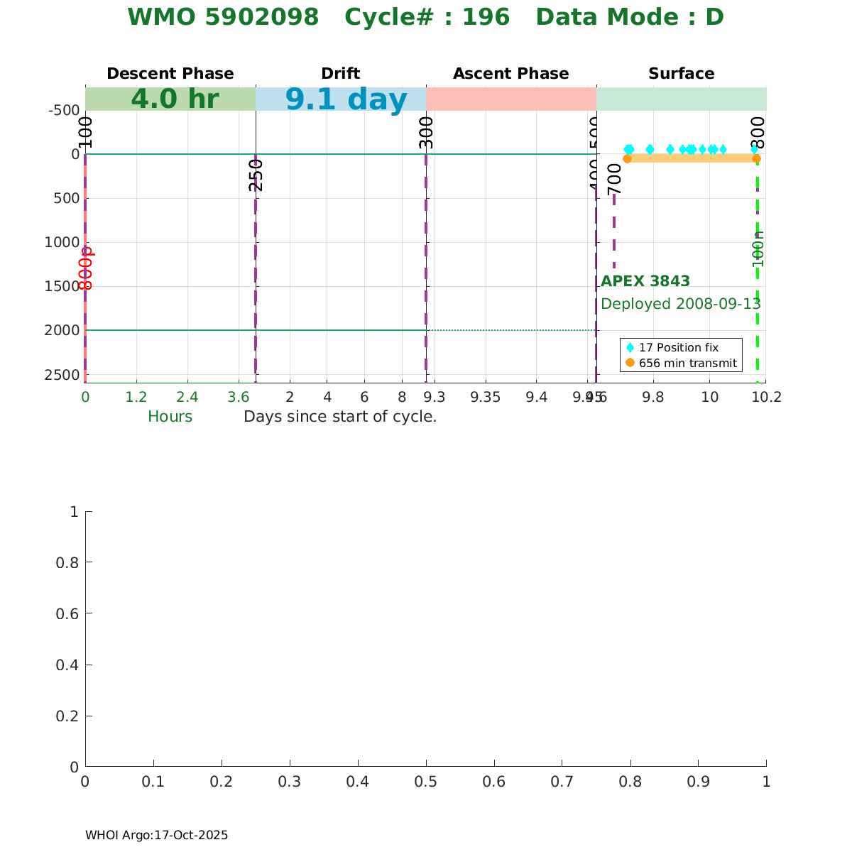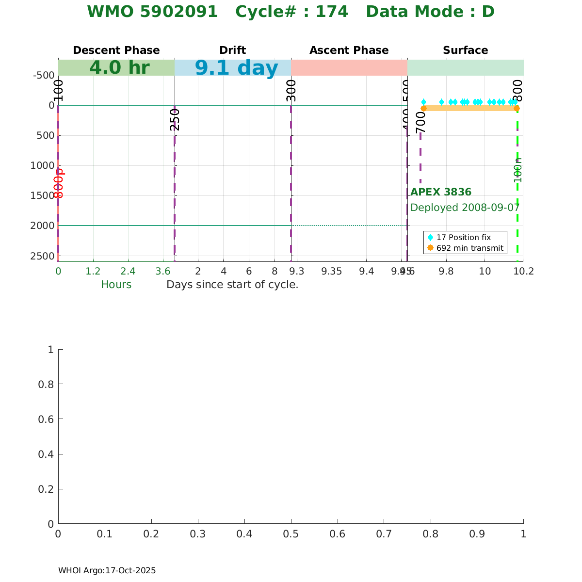| WMO: #5902090 DAC: aoml PI: STEPHEN RISER APEX: #3835 SBE41: #3843 DRUCK_2900PSIA: #2599129 Altimeter Comparison (IFREMER) EuroArgo Link | ![]() |