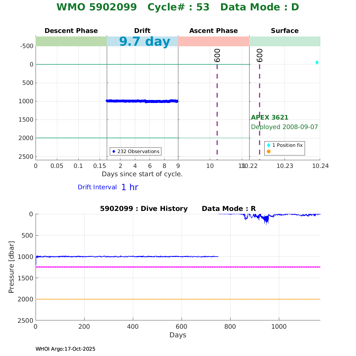 | WMO: #5902098 DAC: aoml PI: STEPHEN RISER APEX: #3843 SBE41: #3849 DRUCK_2900PSIA: #2606388 Altimeter Comparison (IFREMER) EuroArgo Link | ![]() |