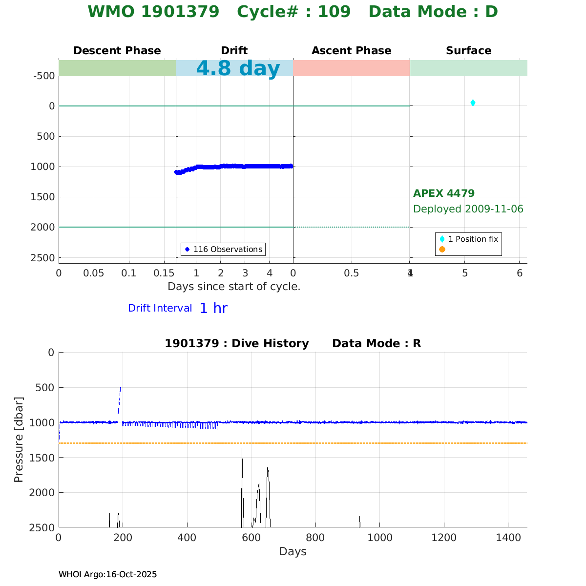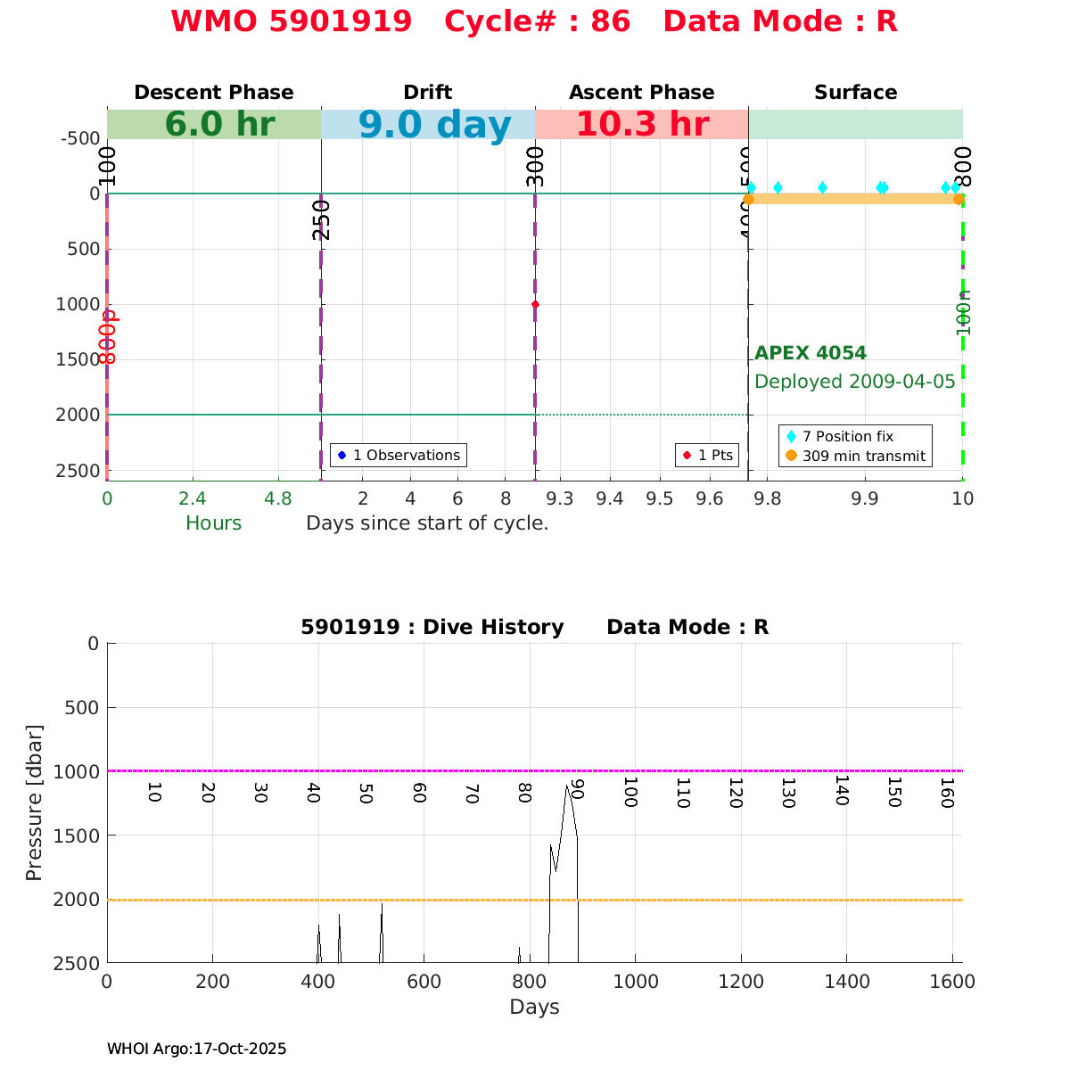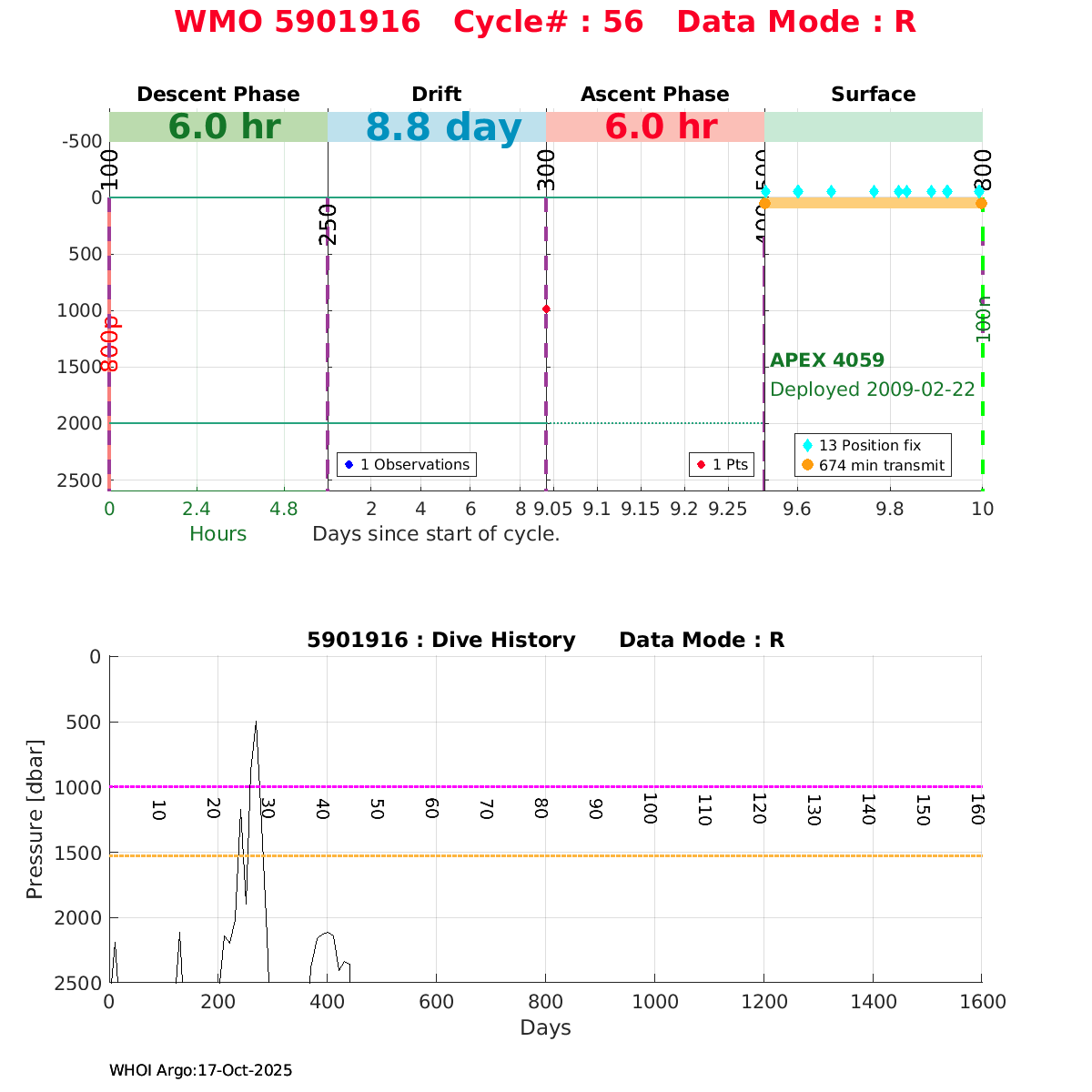 | WMO: #5901916 DAC: jma PI: JAMSTEC APEX: #4059 DRUCK: #2636909 SBE41: #4132 Altimeter Comparison (IFREMER) EuroArgo Link | ![]() |