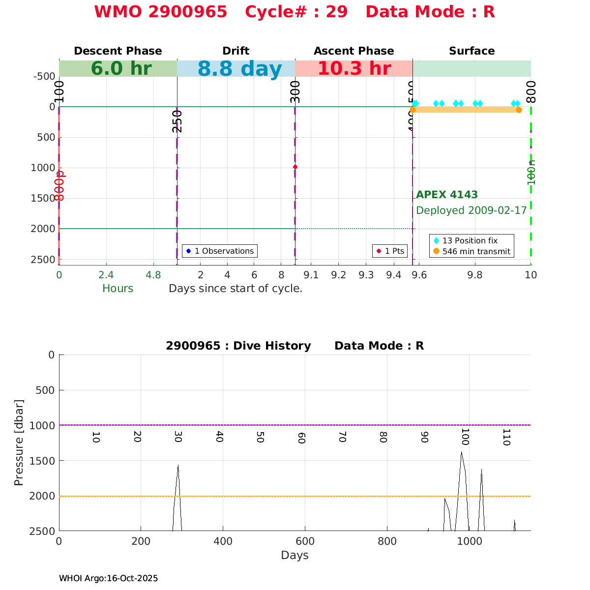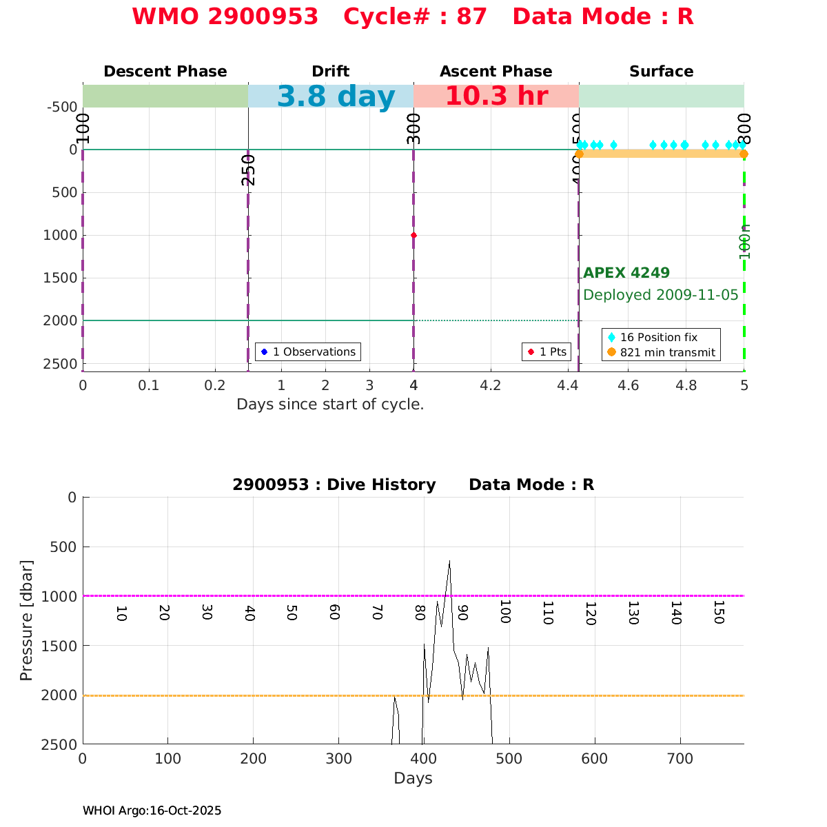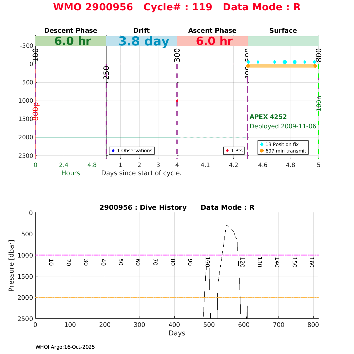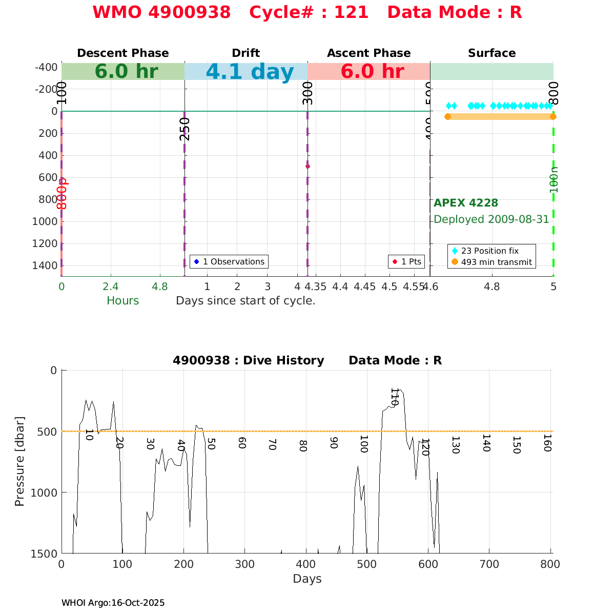 | WMO: #4900938 DAC: jma PI: JAMSTEC APEX: #4228 DRUCK: #2711856 SBE41: #4230 Altimeter Comparison (IFREMER) EuroArgo Link | ![]() |