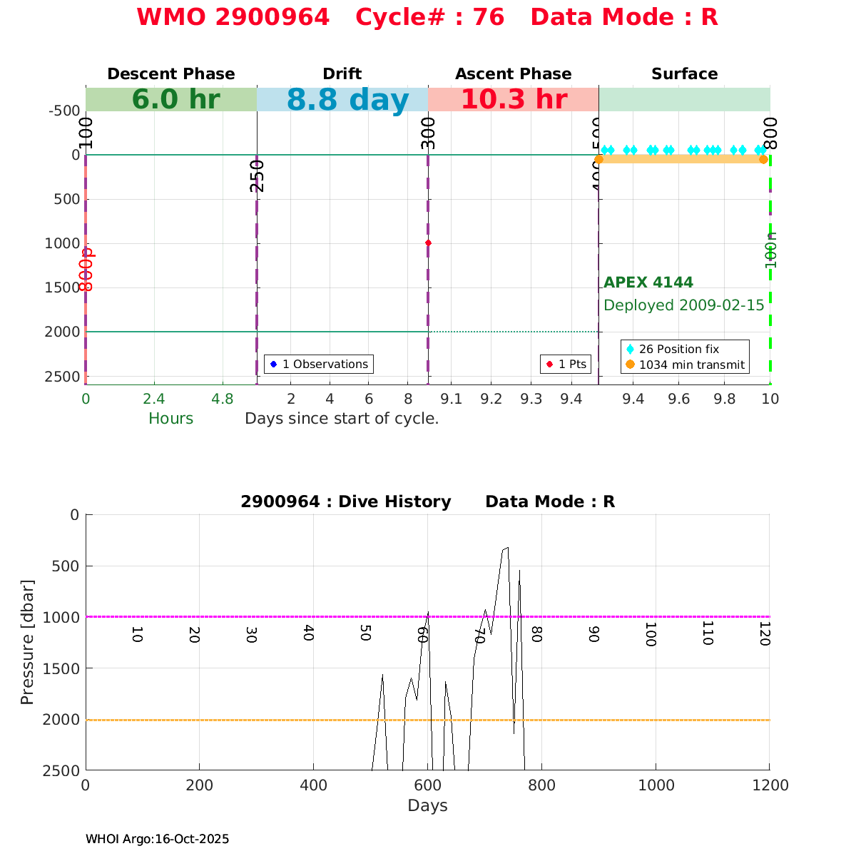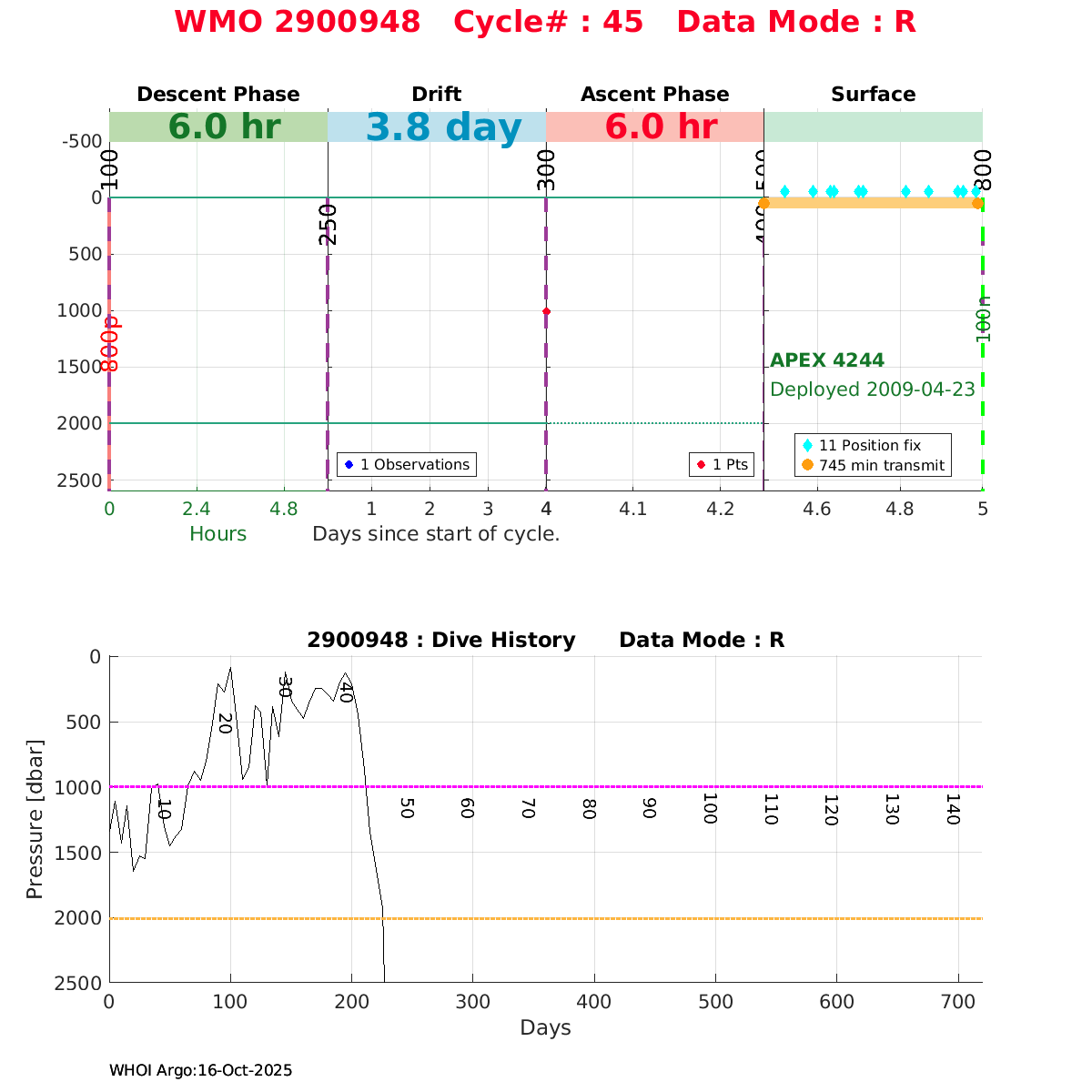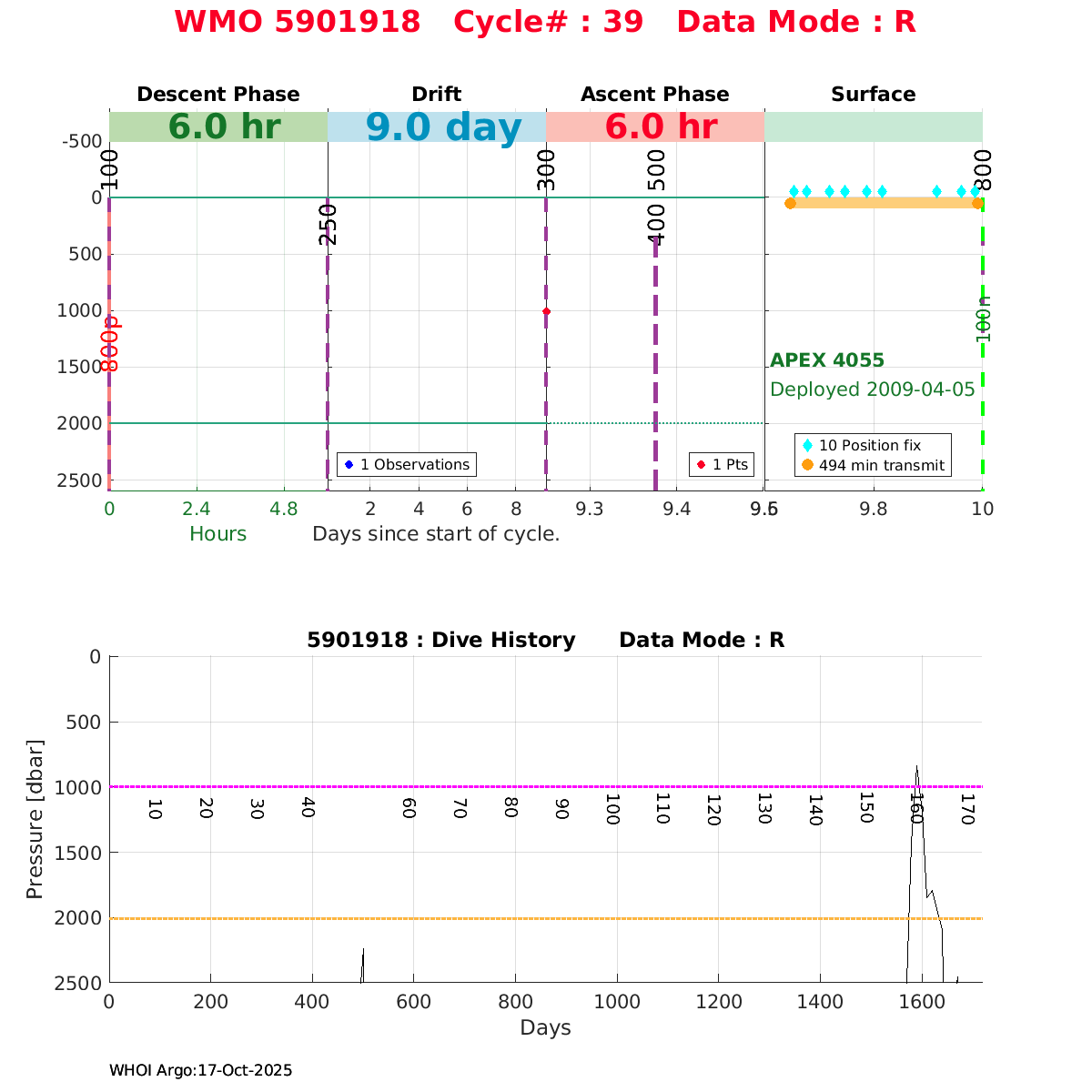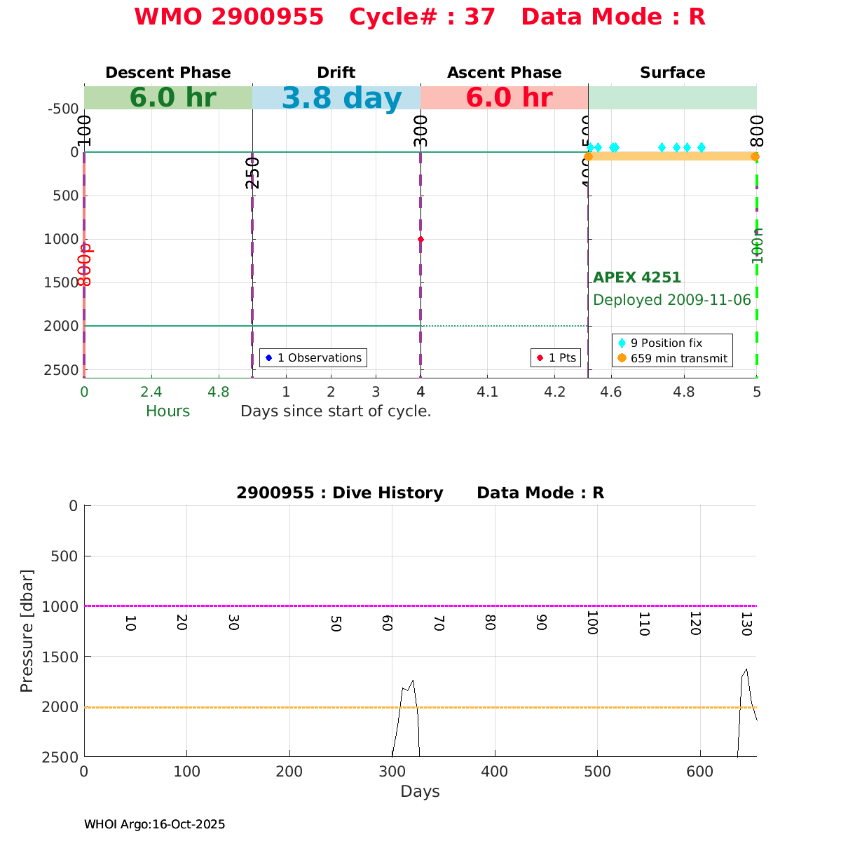 | WMO: #4900938 DAC: jma PI: JAMSTEC APEX: #4228 DRUCK: #2711856 SBE41: #4230 Altimeter Comparison (IFREMER) EuroArgo Link | ![]() |