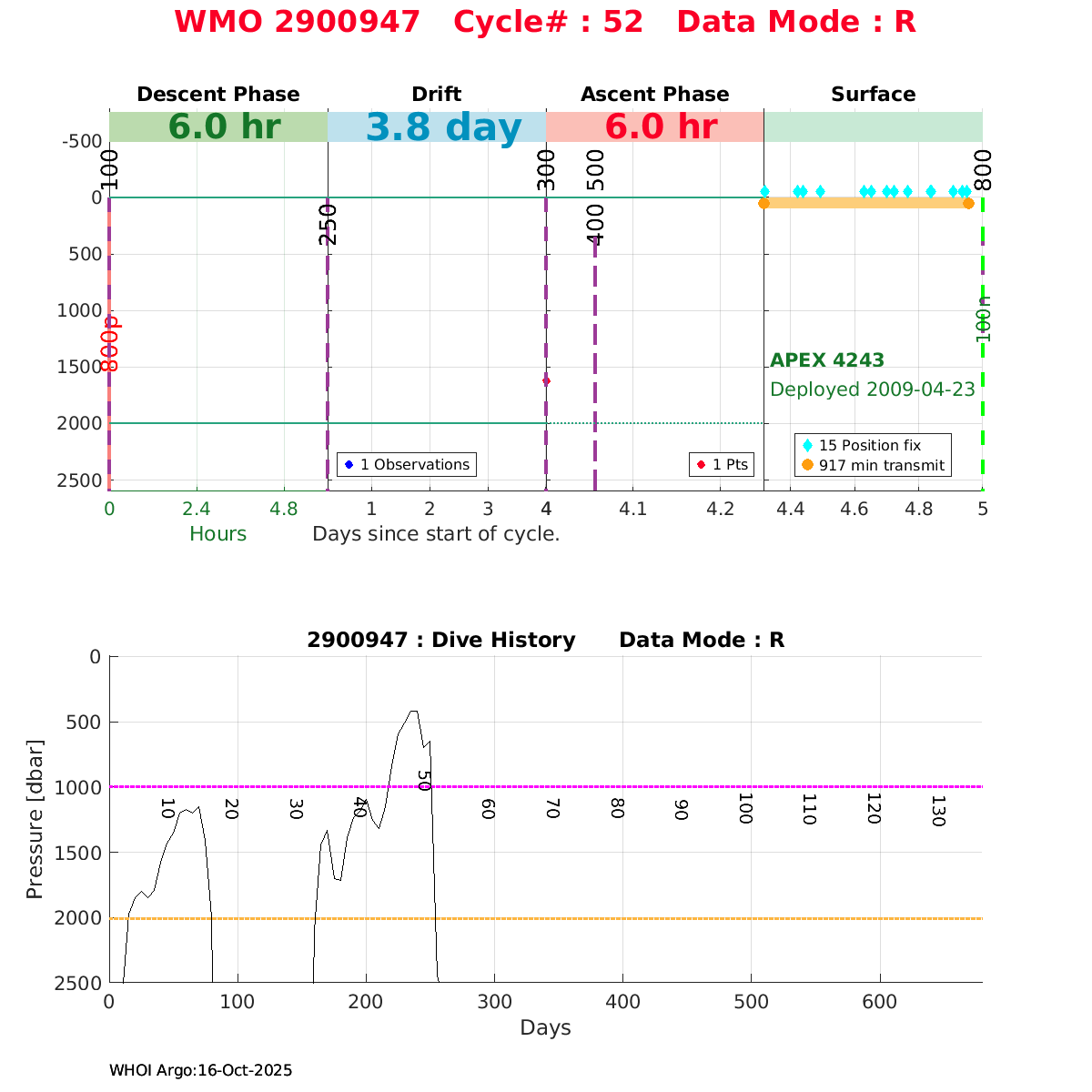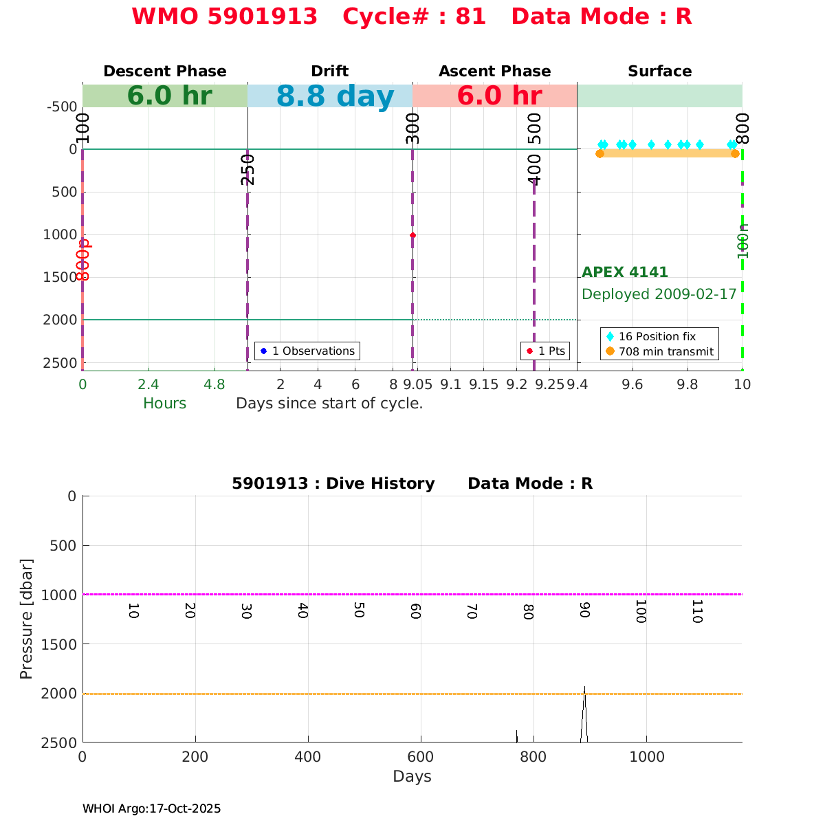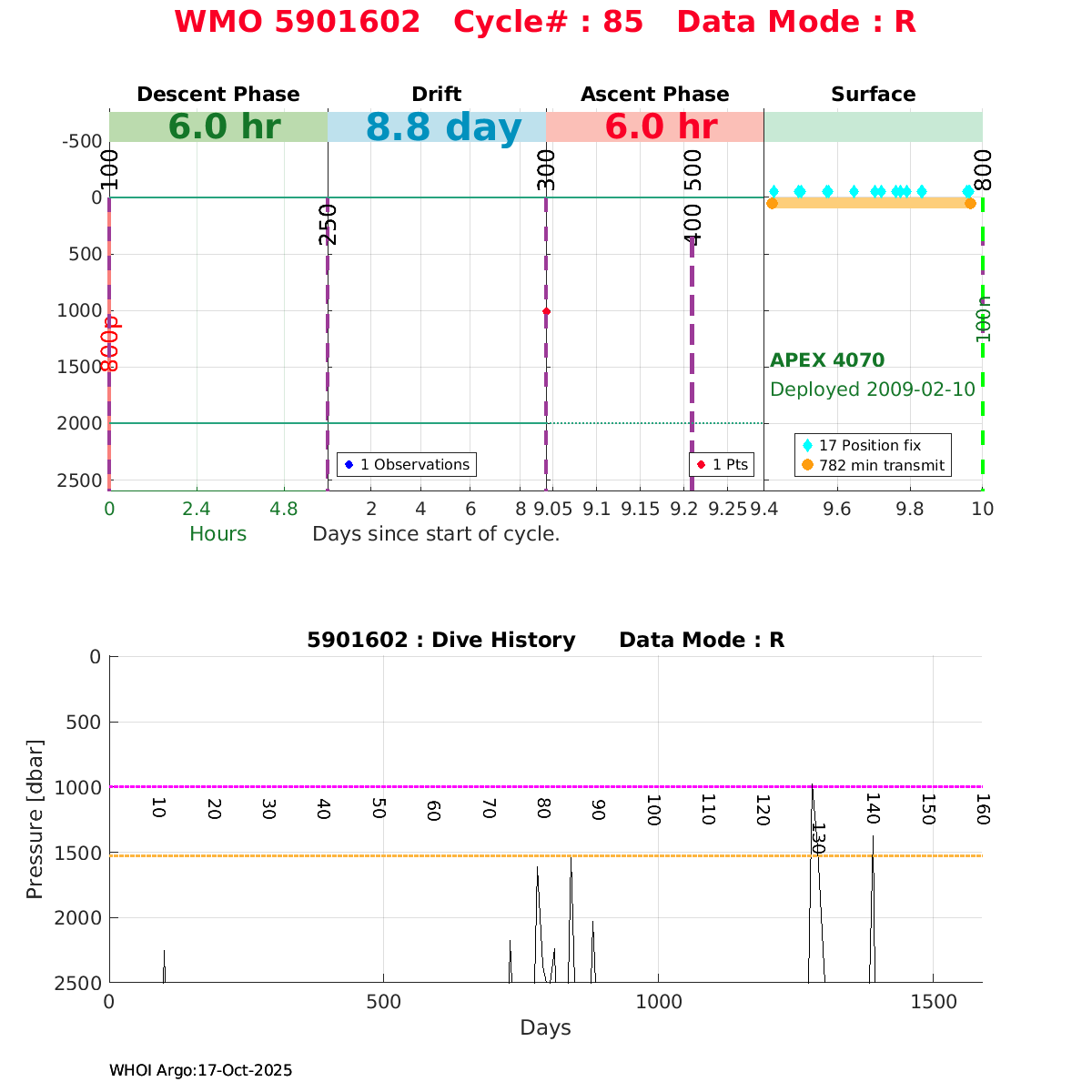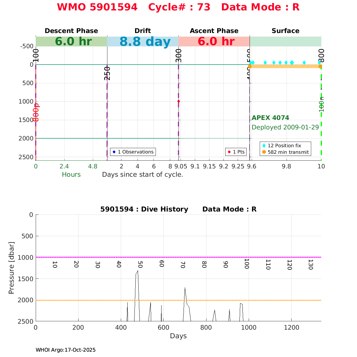 | WMO: #4900938 DAC: jma PI: JAMSTEC APEX: #4228 DRUCK: #2711856 SBE41: #4230 Altimeter Comparison (IFREMER) EuroArgo Link | ![]() |