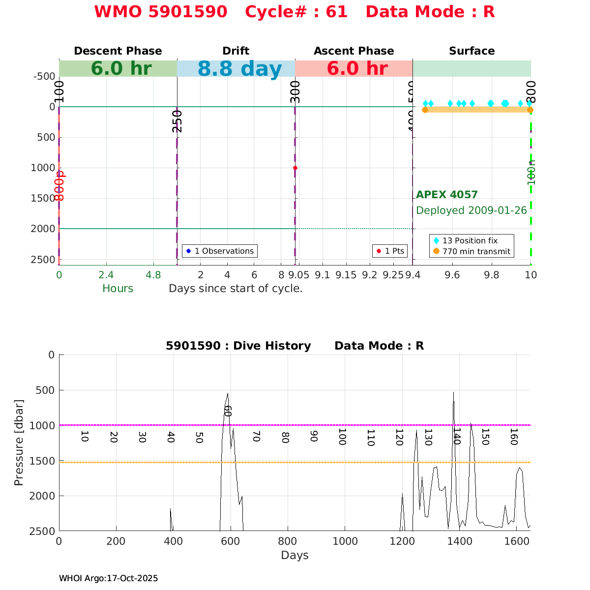 | WMO: #5901590 DAC: jma PI: JAMSTEC APEX: #4057 DRUCK: #2636881 SBE41: #4118 Altimeter Comparison (IFREMER) EuroArgo Link | ![]() |