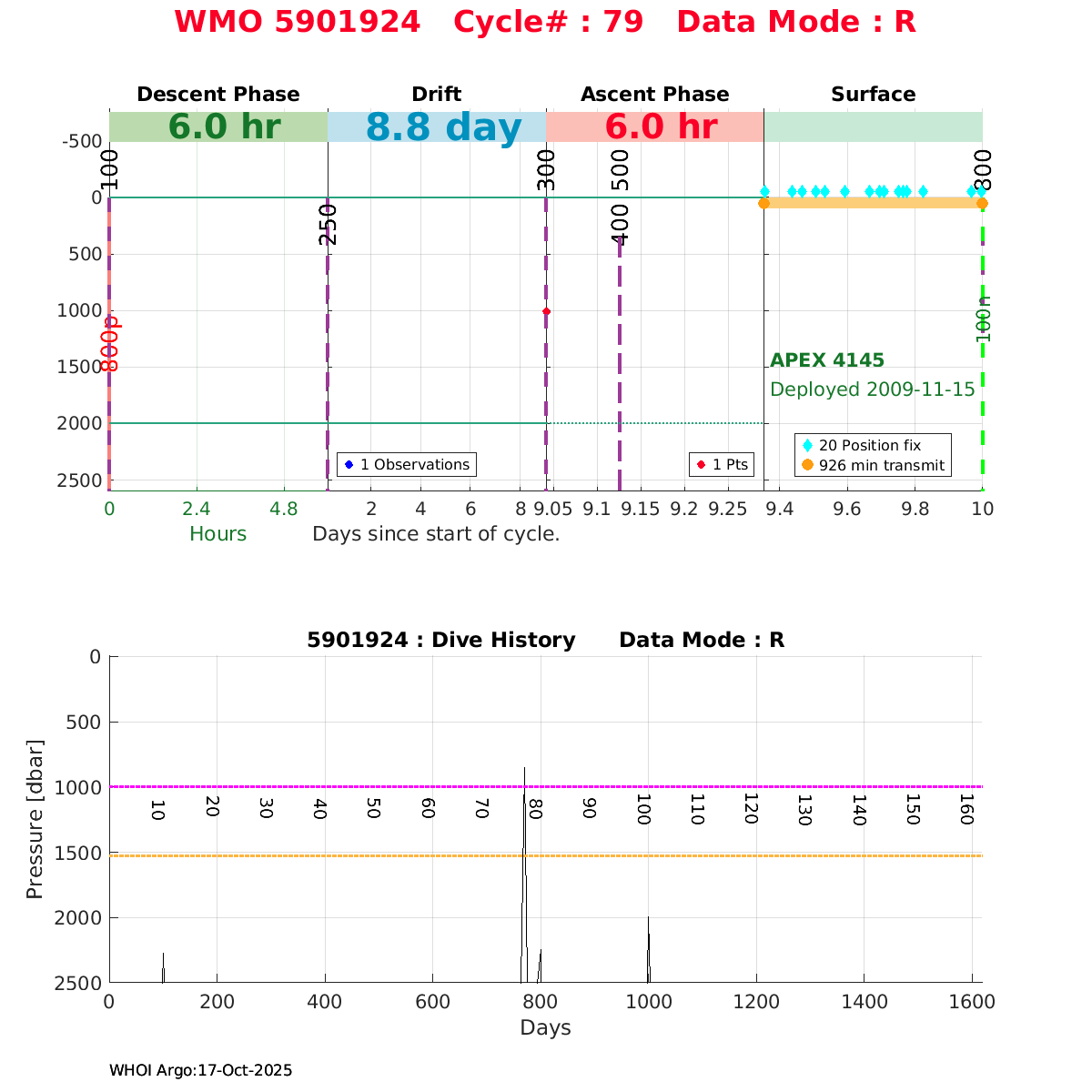 | WMO: #2901173 DAC: csio PI: JIANPING XU APEX: #3924 SBE41: #3928 DRUCK_2900PSIA: #2606455 Altimeter Comparison (IFREMER) EuroArgo Link | ![]() |
