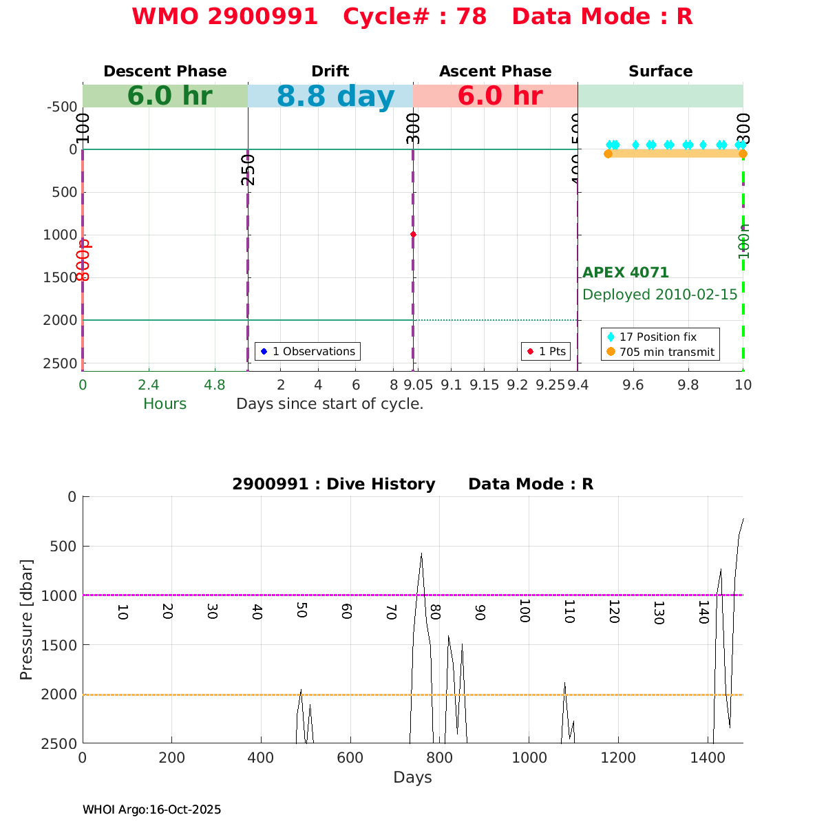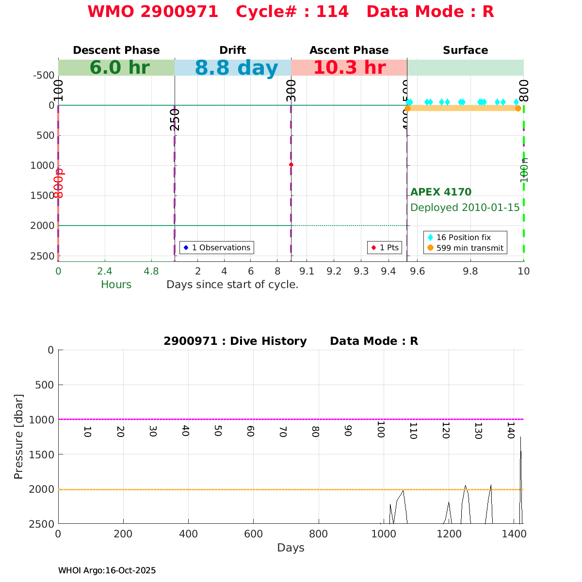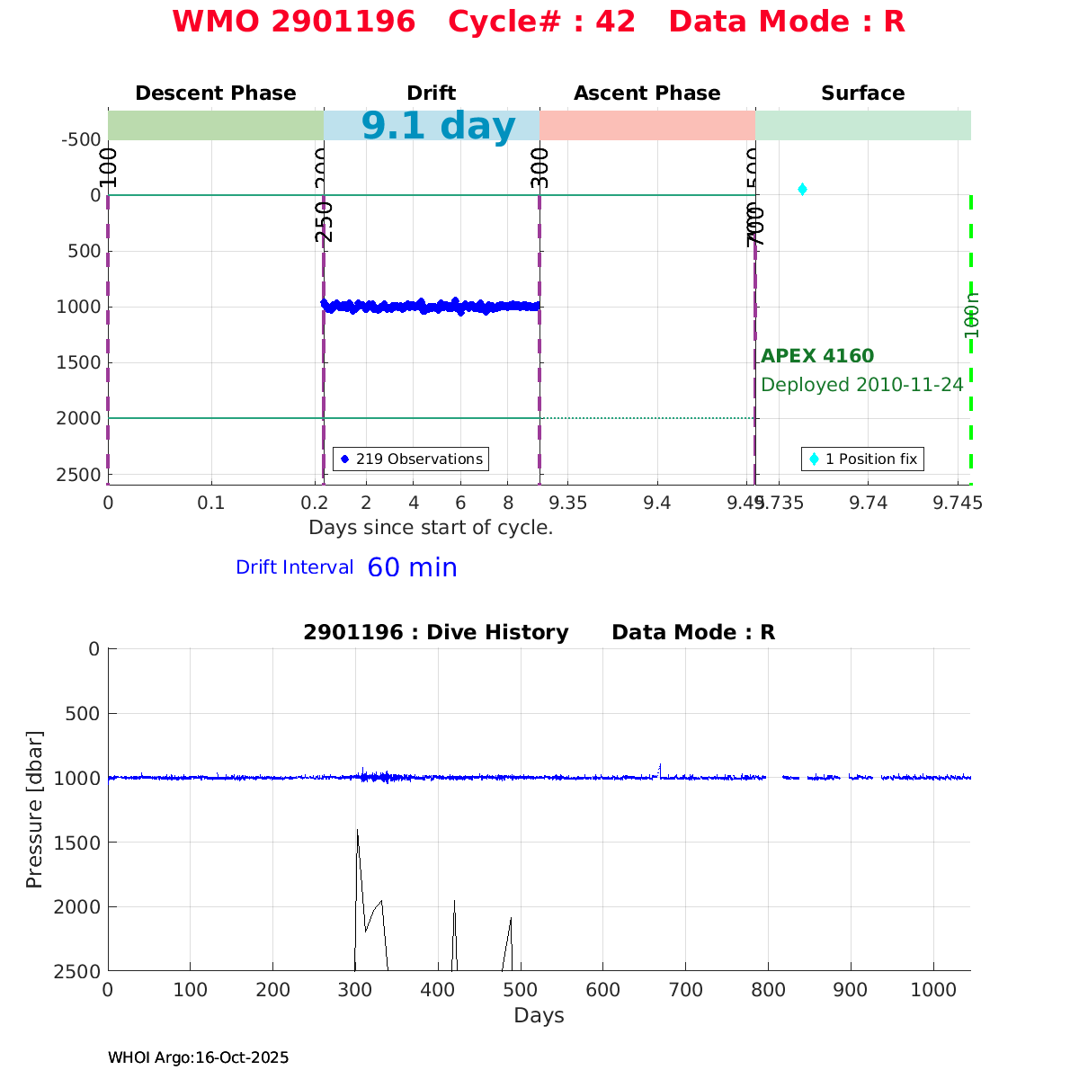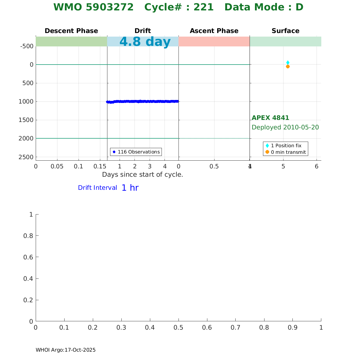 | WMO: #2900971 DAC: jma PI: JAMSTEC APEX: #4170 KISTLER: #2074595 SBE41: #4201 Altimeter Comparison (IFREMER) EuroArgo Link | ![]() |