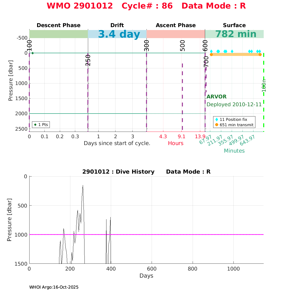 | WMO: #2900972 DAC: jma PI: JAMSTEC APEX: #4169 KISTLER: #2074730 SBE41: #4200 Altimeter Comparison (IFREMER) EuroArgo Link | ![]() |