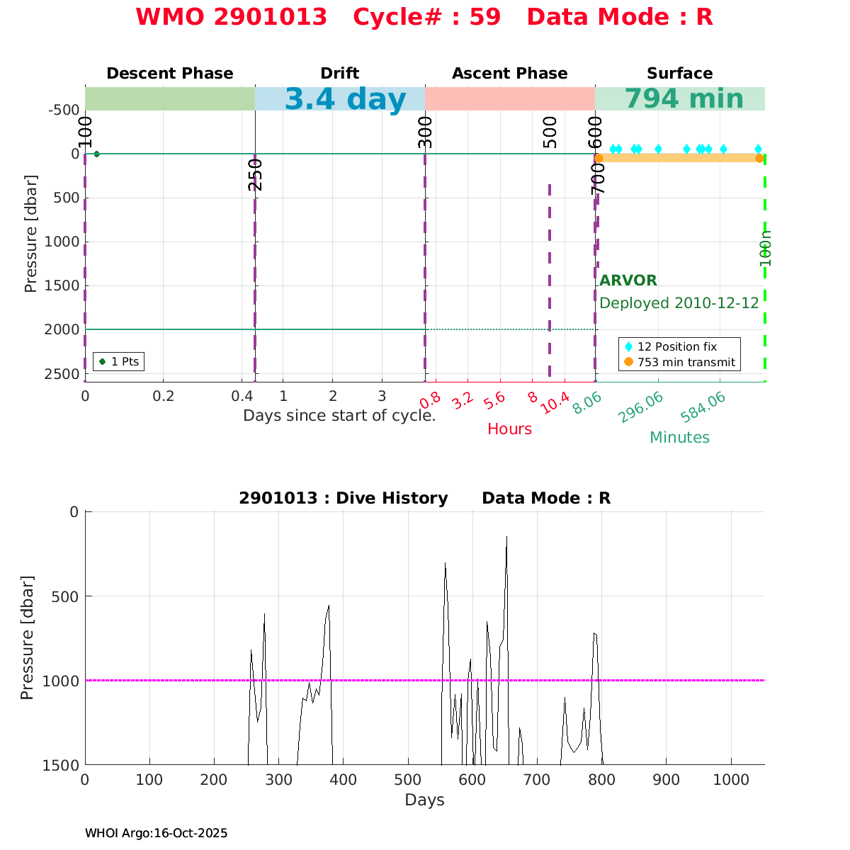 | WMO: #2901012 DAC: jma PI: JMA ARVOR: # KISTLER: #2080519 SBE41CP: #3203 Altimeter Comparison (IFREMER) EuroArgo Link | ![]() |
