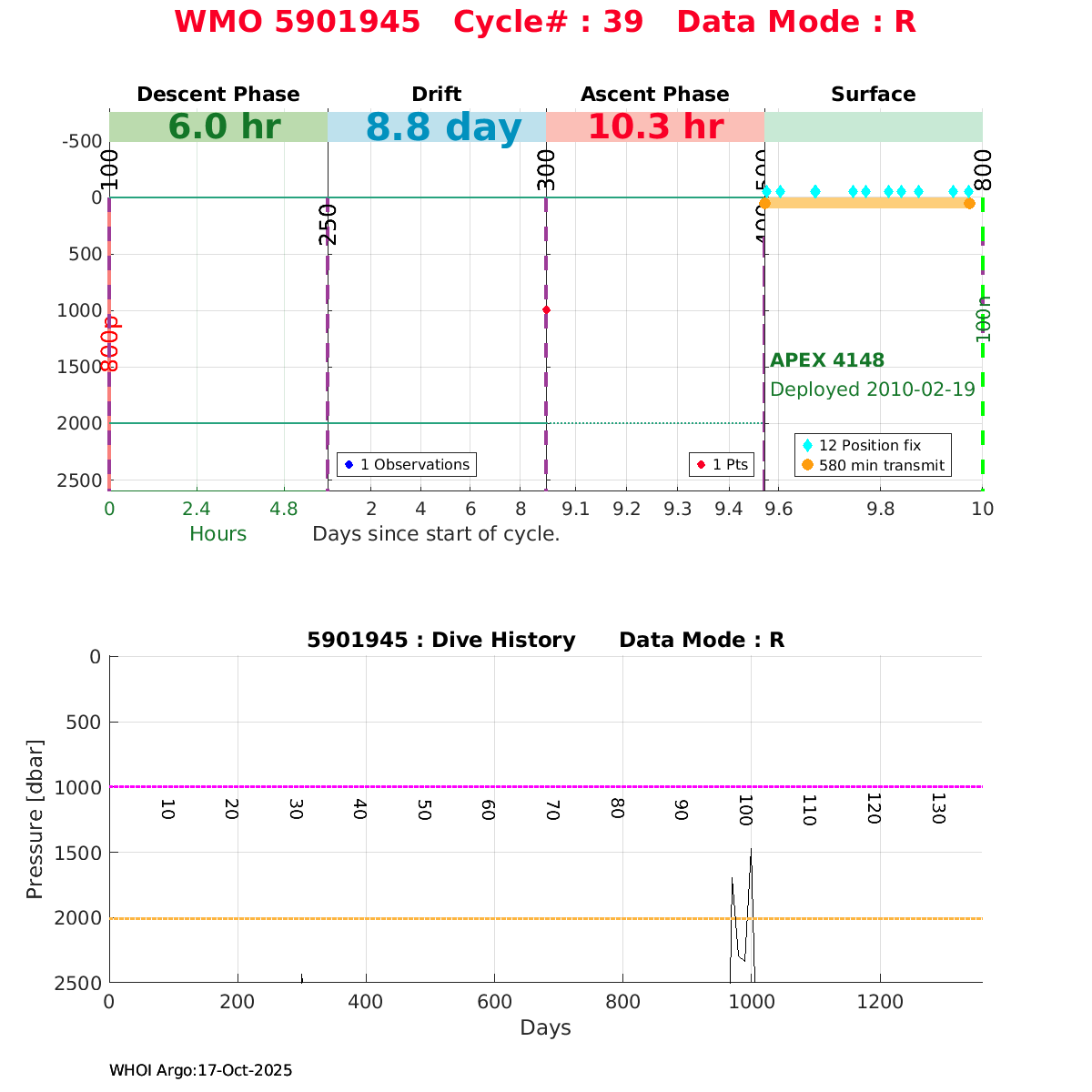| WMO: #2901001 DAC: jma PI: JAMSTEC APEX: #4226 KISTLER: #2074727 SBE41: #4232 Altimeter Comparison (IFREMER) EuroArgo Link | ![]() |