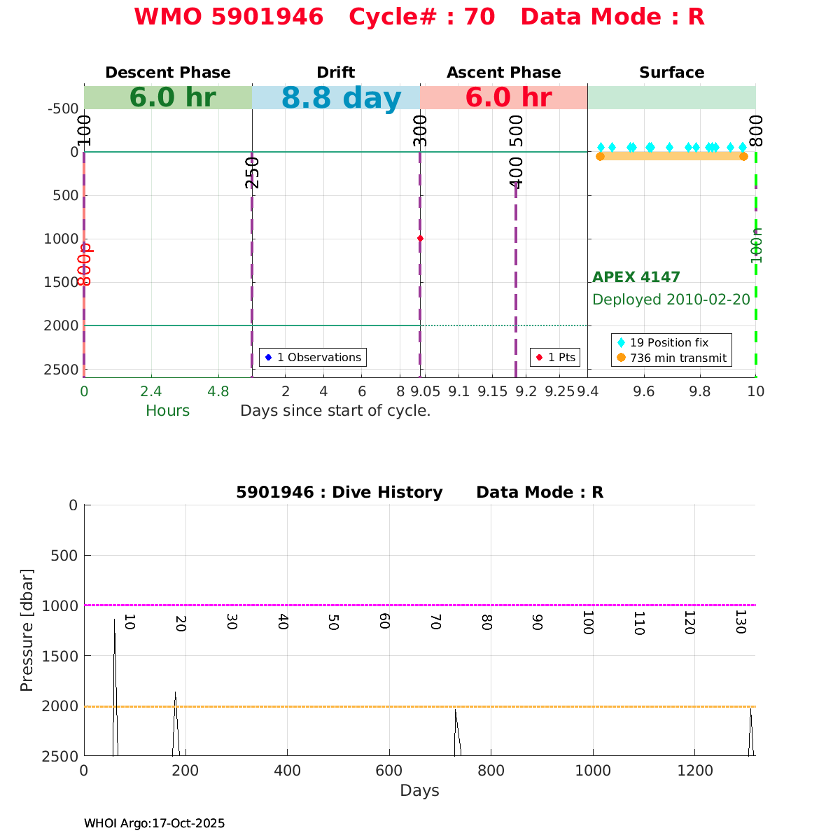 | WMO: #5901946 DAC: jma PI: JAMSTEC APEX: #4147 KISTLER: #2073948 SBE41: #4173 Altimeter Comparison (IFREMER) EuroArgo Link | ![]() |