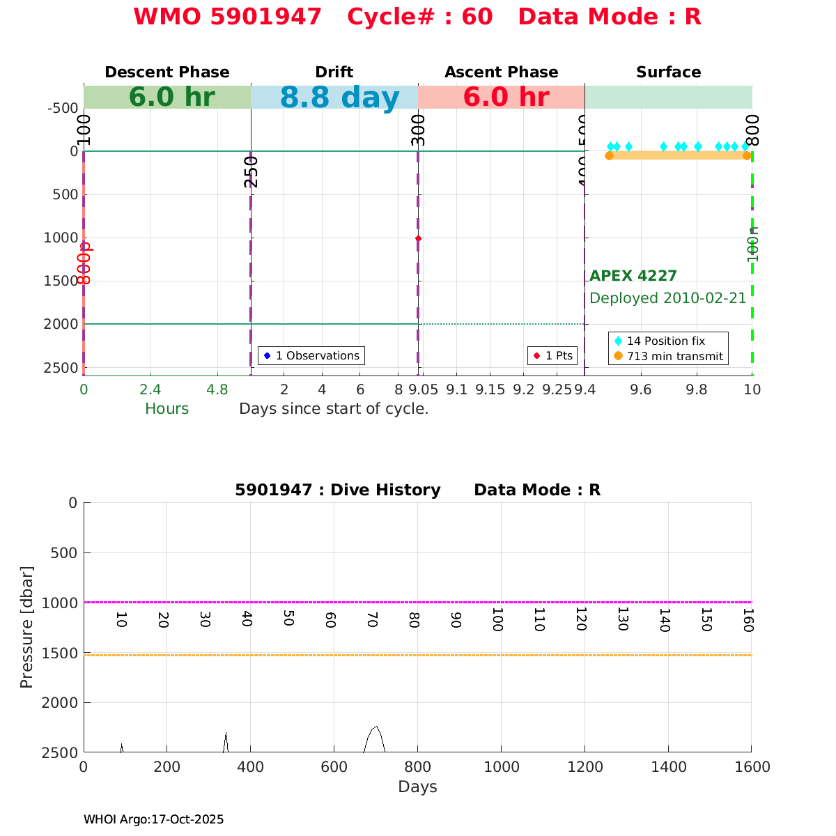 | WMO: #5901947 DAC: jma PI: JAMSTEC APEX: #4227 KISTLER: #2074602 SBE41: #4231 Altimeter Comparison (IFREMER) EuroArgo Link | ![]() |