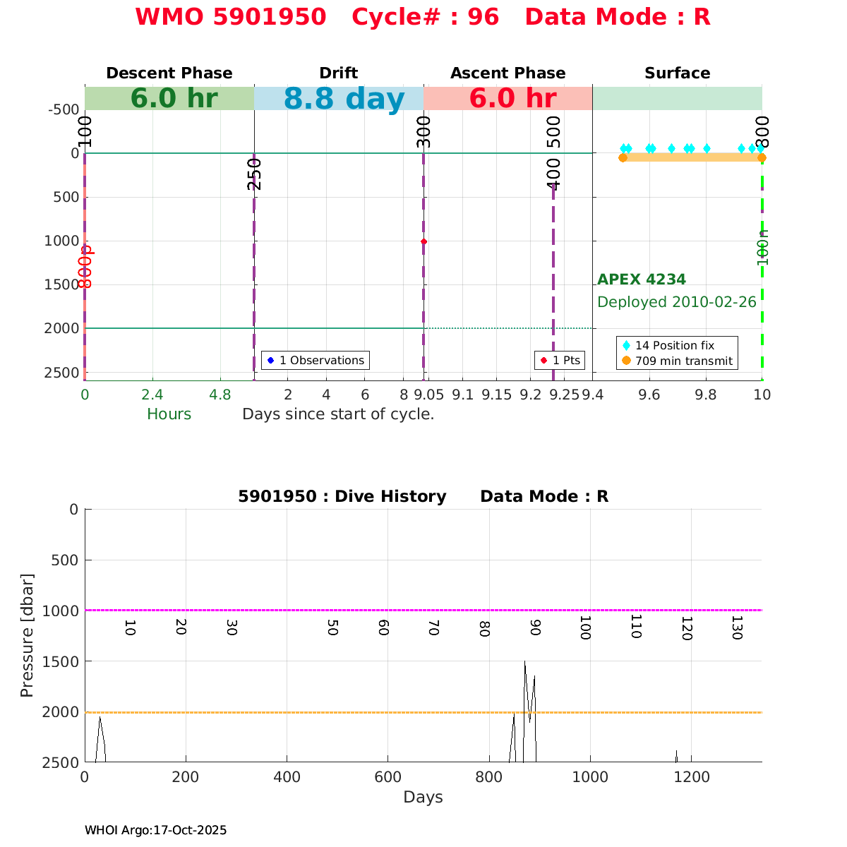 | WMO: #5901950 DAC: jma PI: JAMSTEC APEX: #4234 KISTLER: #2074604 SBE41: #4227 Altimeter Comparison (IFREMER) EuroArgo Link | ![]() |