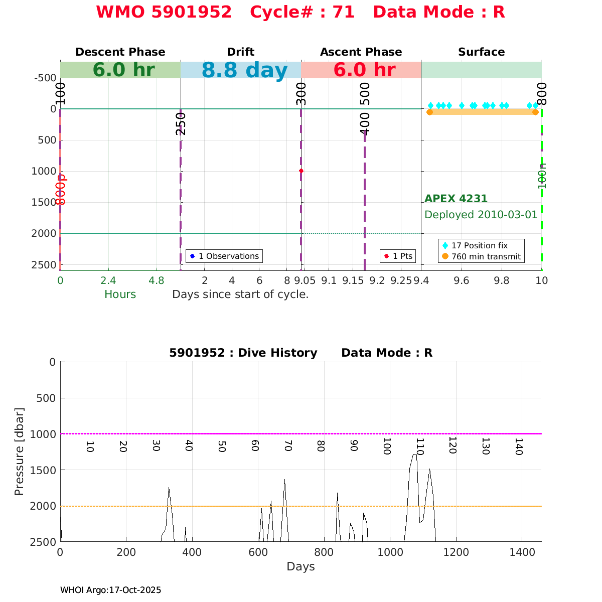 | WMO: #5901952 DAC: jma PI: JAMSTEC APEX: #4231 DRUCK: #2793413 SBE41: #4224 Altimeter Comparison (IFREMER) EuroArgo Link | ![]() |