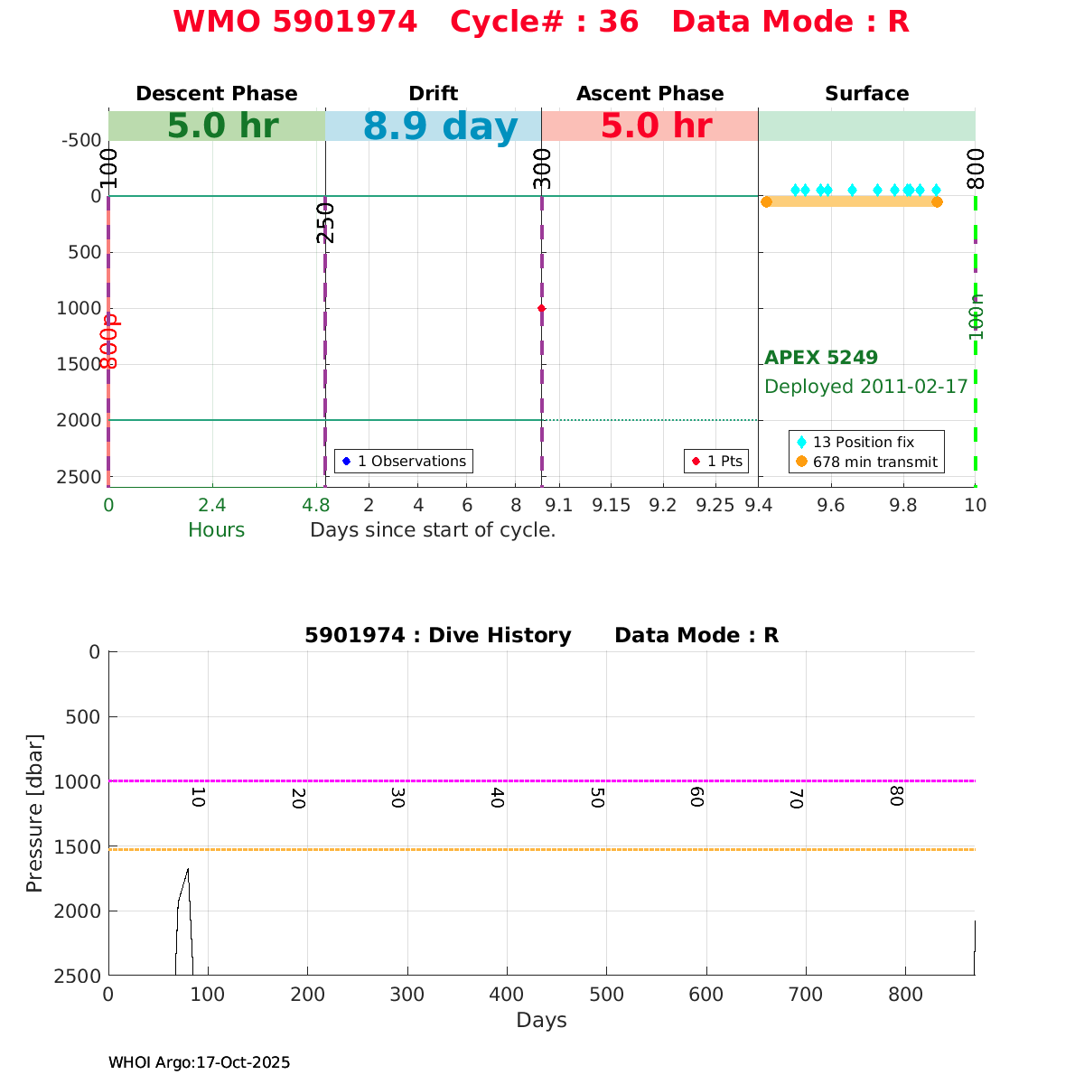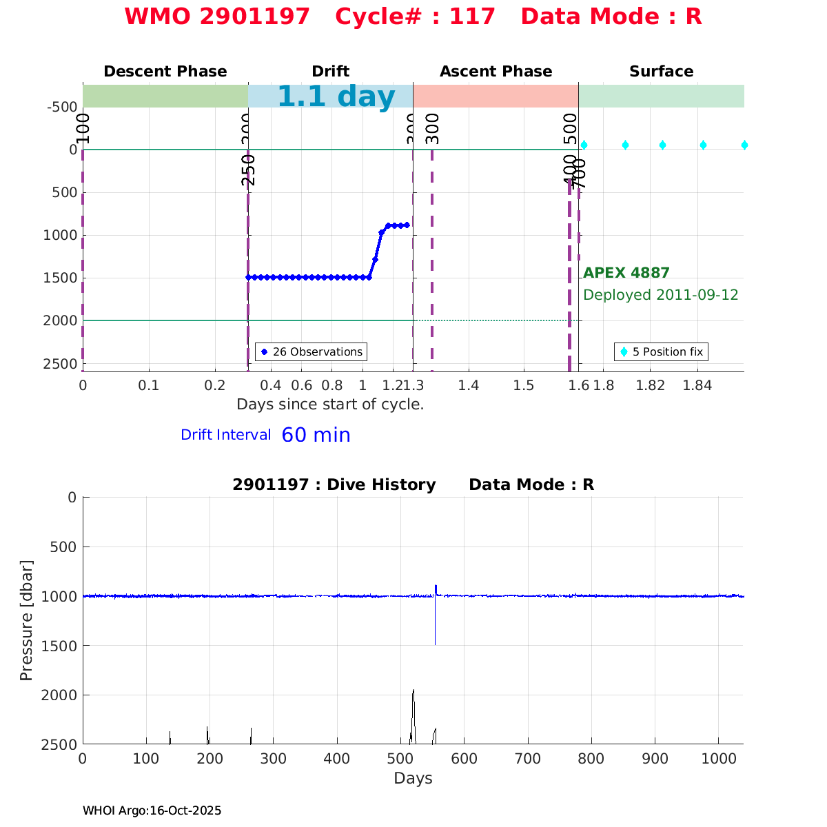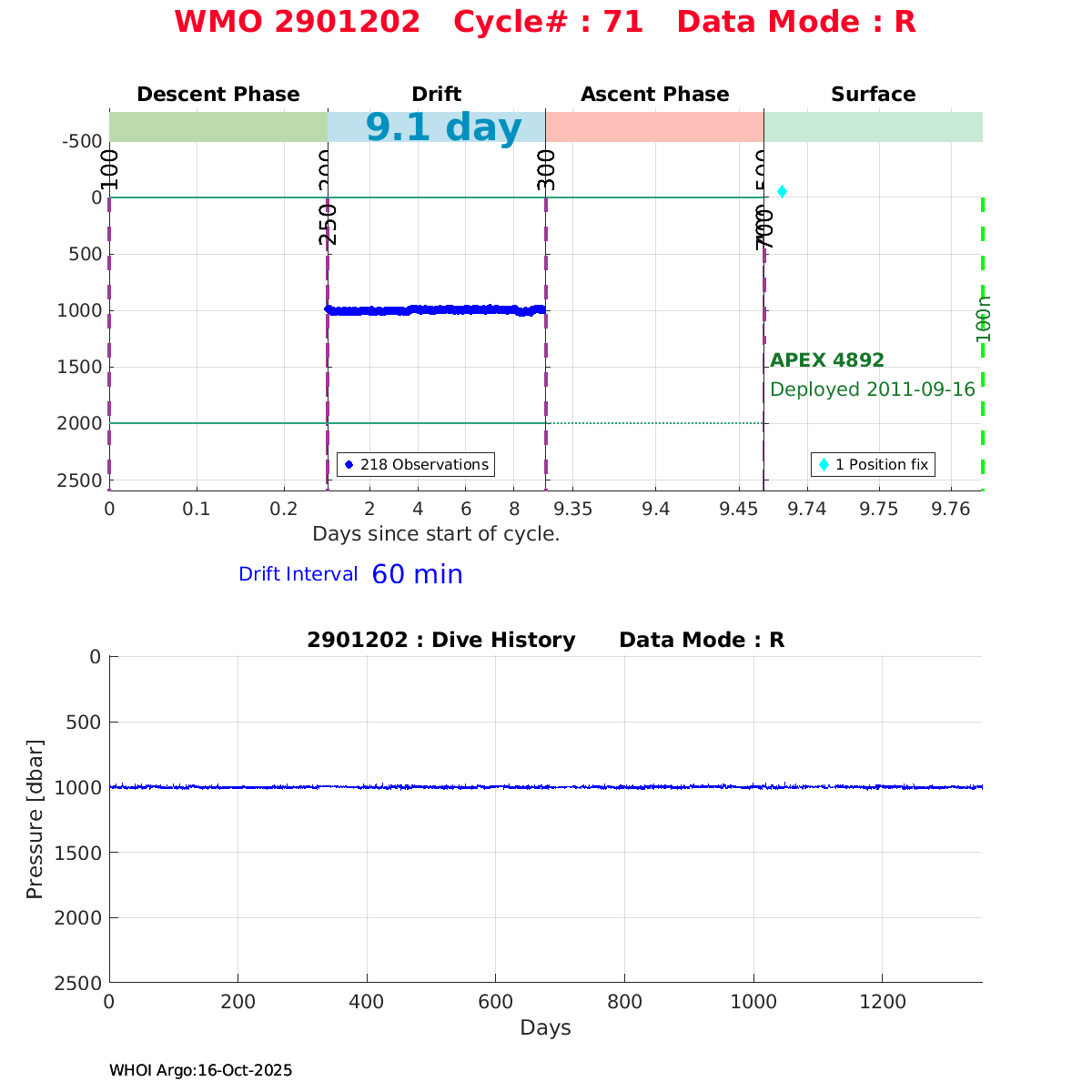 | WMO: #2901202 DAC: csio PI: JIANPING XU APEX: #4892 SBE41CP: #2984 2900PSIA: #2077371 Altimeter Comparison (IFREMER) EuroArgo Link | ![]() |