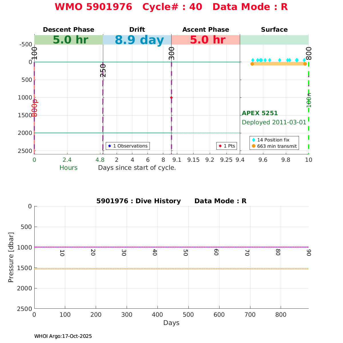 | WMO: #5901976 DAC: jma PI: JAMSTEC APEX: #5251 DRUCK: #3159504 SBE41_V3: #5148 Altimeter Comparison (IFREMER) EuroArgo Link | ![]() |