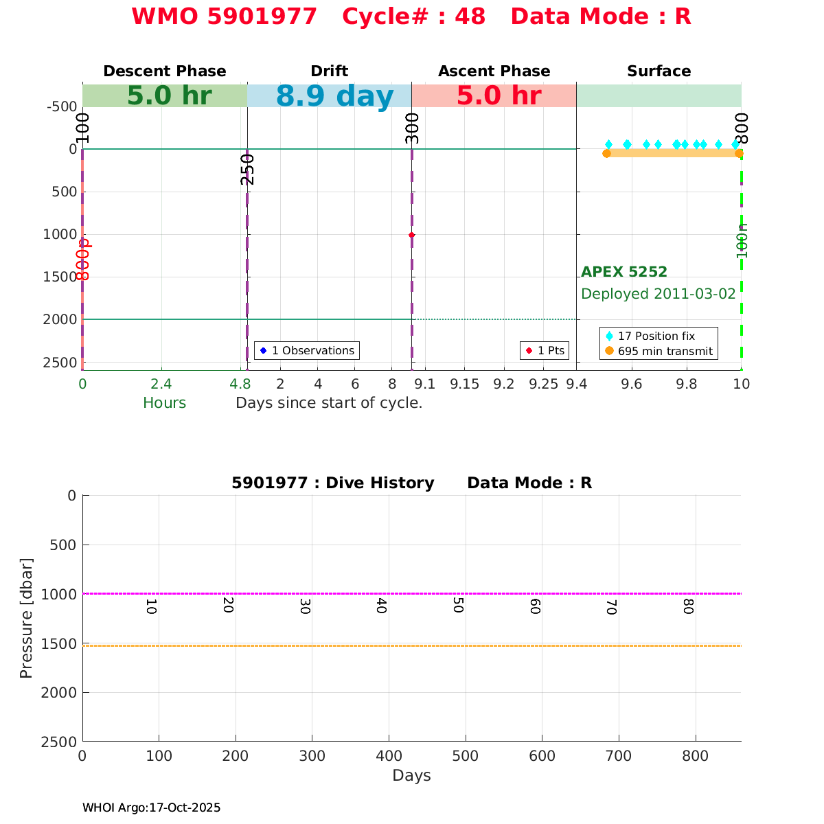 | WMO: #5901977 DAC: jma PI: JAMSTEC APEX: #5252 DRUCK: #3155231 SBE41_V3: #5149 Altimeter Comparison (IFREMER) EuroArgo Link | ![]() |