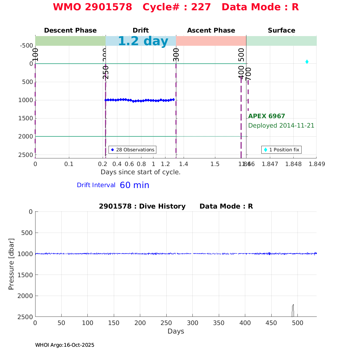 | WMO: #2901571 DAC: csio PI: JIANPING XU APEX: #6960 SBE41: #6410 2900PSIA: #3820974 Altimeter Comparison (IFREMER) EuroArgo Link | ![]() |