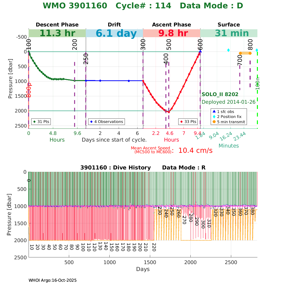 | WMO: #3901160 DAC: aoml PI: Dean ROEMMICH SOLO_II: #8202 DRUCK_2900PSIA: #3826228 SBE41CP: #5326 Altimeter Comparison (IFREMER) EuroArgo Link | ![]() |