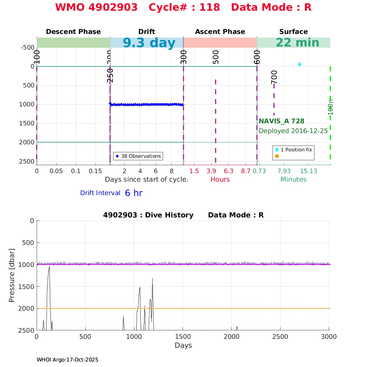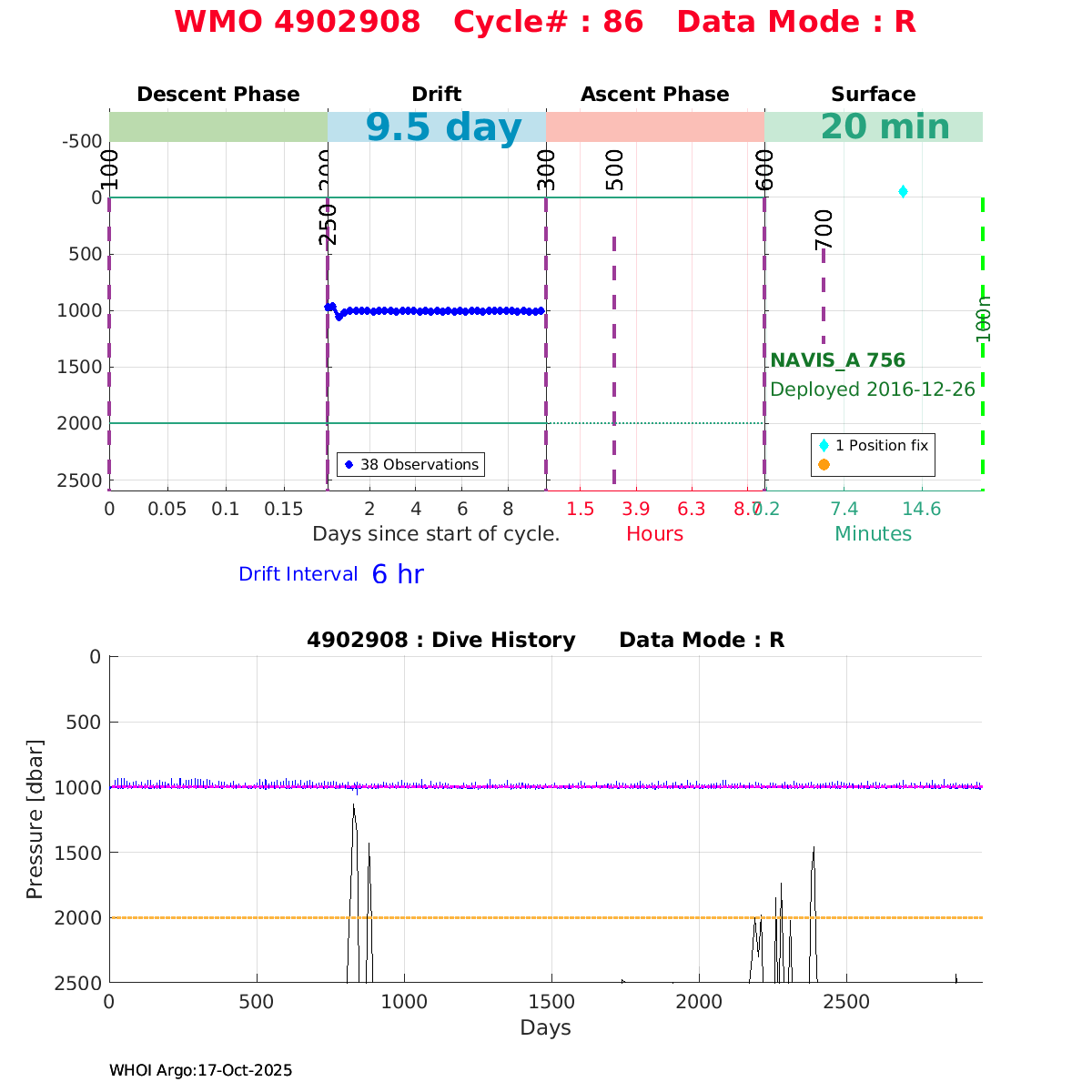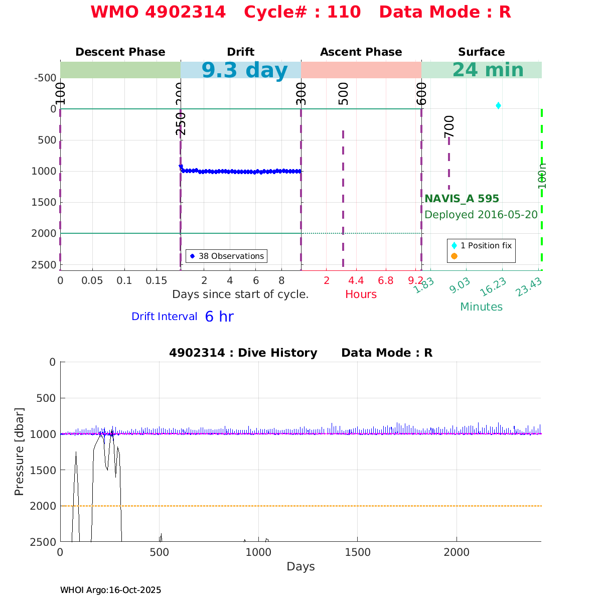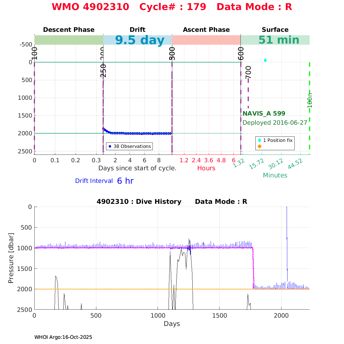 | WMO: #4902368 DAC: jma PI: JAMSTEC NAVIS_A: #416 DRUCK: #4038328 SBE41CP_V2: #6236 Altimeter Comparison (IFREMER) EuroArgo Link | ![]() |