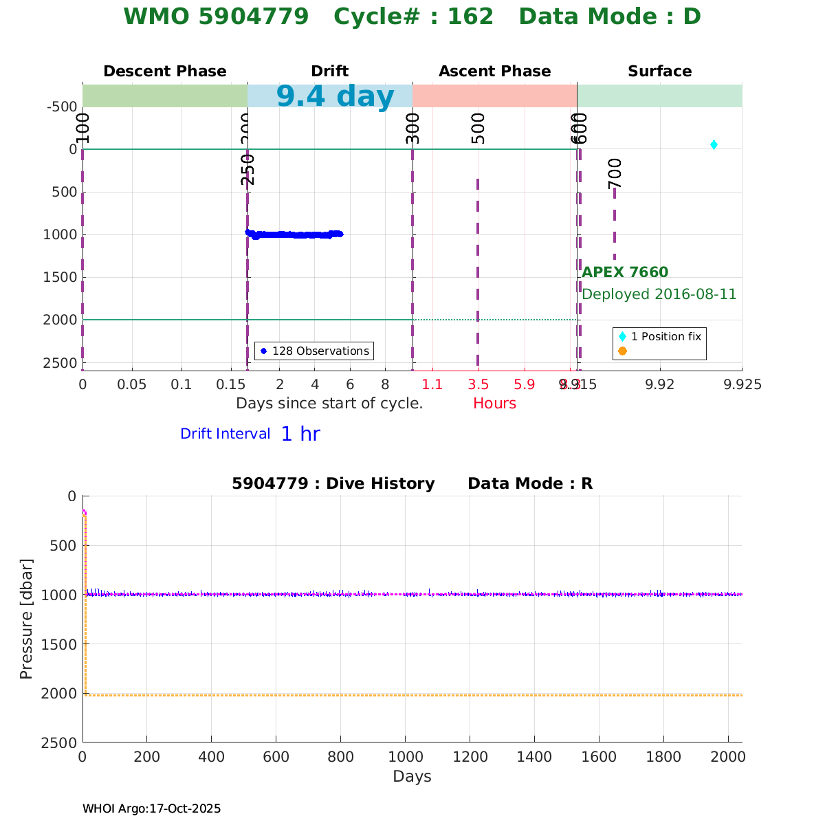 | WMO: #5904779 DAC: aoml PI: STEPHEN RISER APEX: #7660 SBE41CP: #7825 DRUCK_2900PSIA: #10174016 Altimeter Comparison (IFREMER) EuroArgo Link | ![]() |
