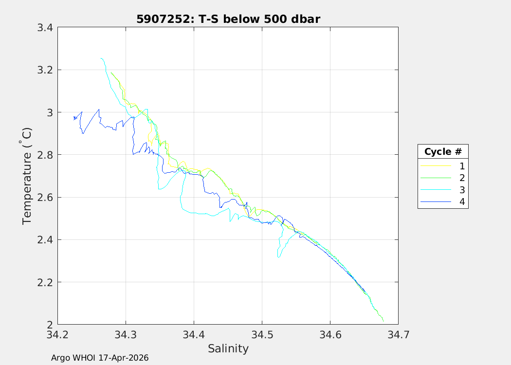 | WMO: #5907252 DAC: aoml PI: SUSAN WIJFFELS, DAVID NICHOLSON SOLO BGC MRV: #4059 DRUCK_2900PSIA: #13150307 SBE41CP: #21527 ECO_FLBBFL: #9149 OCR504_ICSW: #2583 SUNA_V2: #2475 SBE83_OPTODE: #0256 SEAFET: #21527 Altimeter Comparison (IFREMER) EuroArgo Link | n/a | n/a | ![]() |