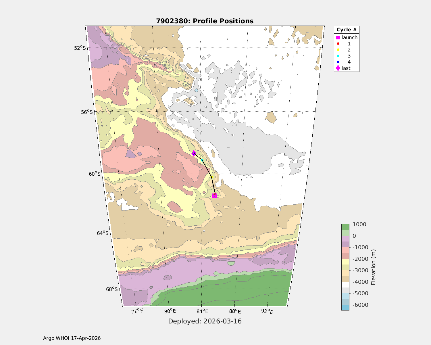 | WMO: #1902707 DAC: aoml PI: Sarah PURKEY SOLO BGC MRV: #4064 SBE41CP: #21500 SBE83_OPTODE: #257 ECO_FLBBFL: #9339 SEAFET: #20809 SUNA_V2: #2518 OCR504_ICSW: #2621 Altimeter Comparison (IFREMER) EuroArgo Link | n/a | n/a | ![]() |