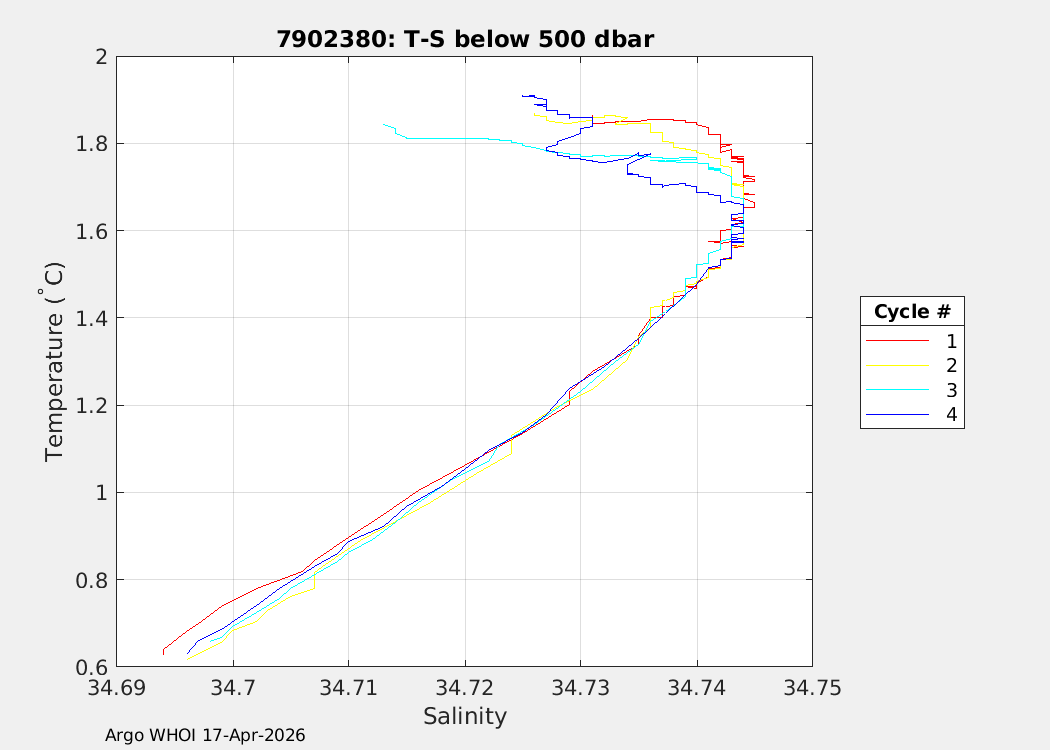 | WMO: #2903922 DAC: aoml PI: Sarah PURKEY SOLO BGC MRV: #4039 SBE41CP: #20796 SBE83_OPTODE: #169 ECO_FLBBFL: #9166 SEAFET: #20431 SUNA_V2: #2395 OCR504_ICSW: #2567 Altimeter Comparison (IFREMER) EuroArgo Link | ![]() |