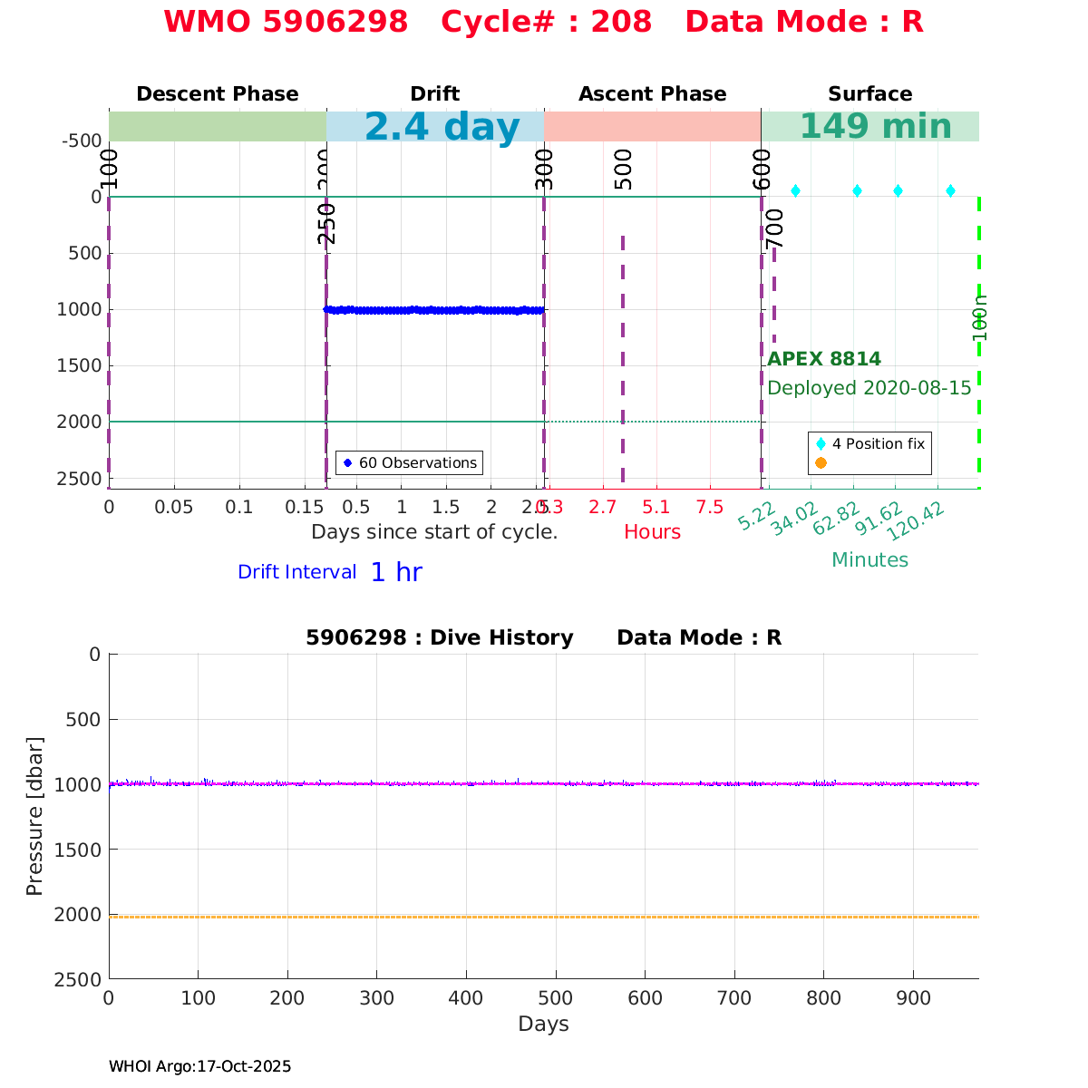 | WMO: #4903275 DAC: aoml PI: SUSAN WIJFFELS, STEVEN JAYNE, PELLE ROBBINS ALTO: #11149 RBR_ARGO3: #203999 RBR_PRES_A: #203999 Altimeter Comparison (IFREMER) EuroArgo Link | n/a | n/a | ![]() |