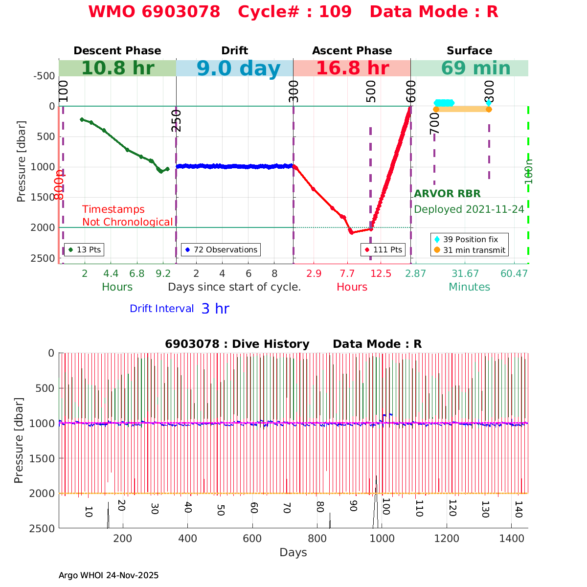 | WMO: #6903710 DAC: coriolis PI: Laura TUOMI ARVOR RBR: # FLOATCLOCK: # RBR_PRES_A: #205364 RBR_ARGO3: #205364 Altimeter Comparison (IFREMER) EuroArgo Link | n/a | n/a | ![]() |