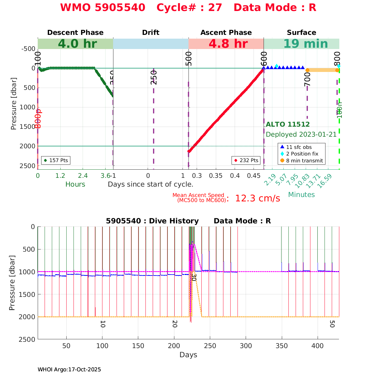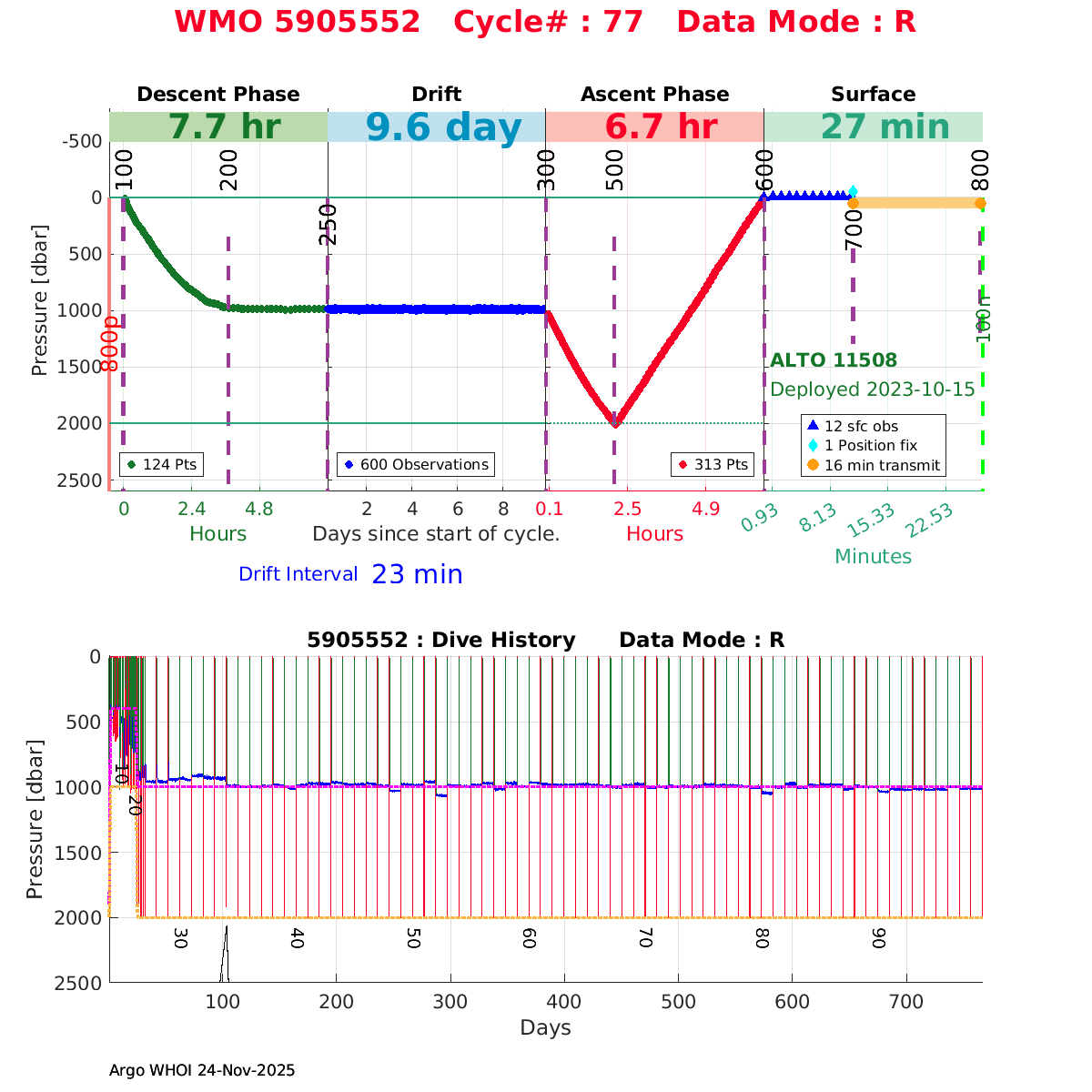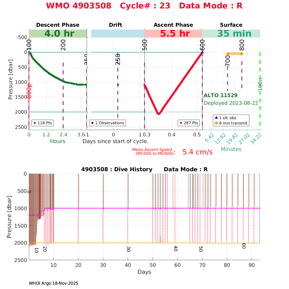 | WMO: #4903508 DAC: aoml PI: GREGORY C. JOHNSON ALTO: #11529 RBR_ARGO3: #211323 RBR_PRES_A: #211323 Altimeter Comparison (IFREMER) EuroArgo Link | ![]() |