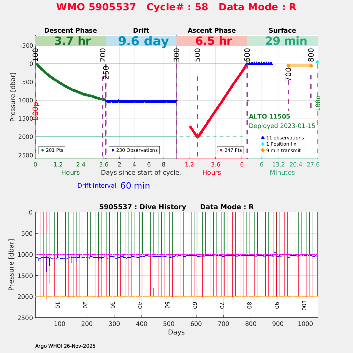 | WMO: #5905539 DAC: csiro PI: Peter Oke ALTO: #11511 RBR_PRES_A: #207907 RBR_ARGO3: #207907 Altimeter Comparison (IFREMER) EuroArgo Link | n/a | n/a | ![]() |
