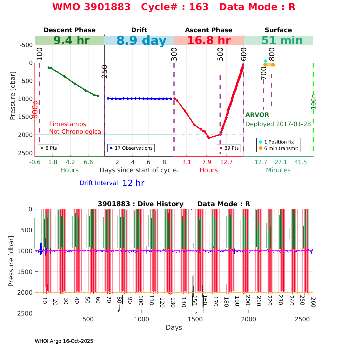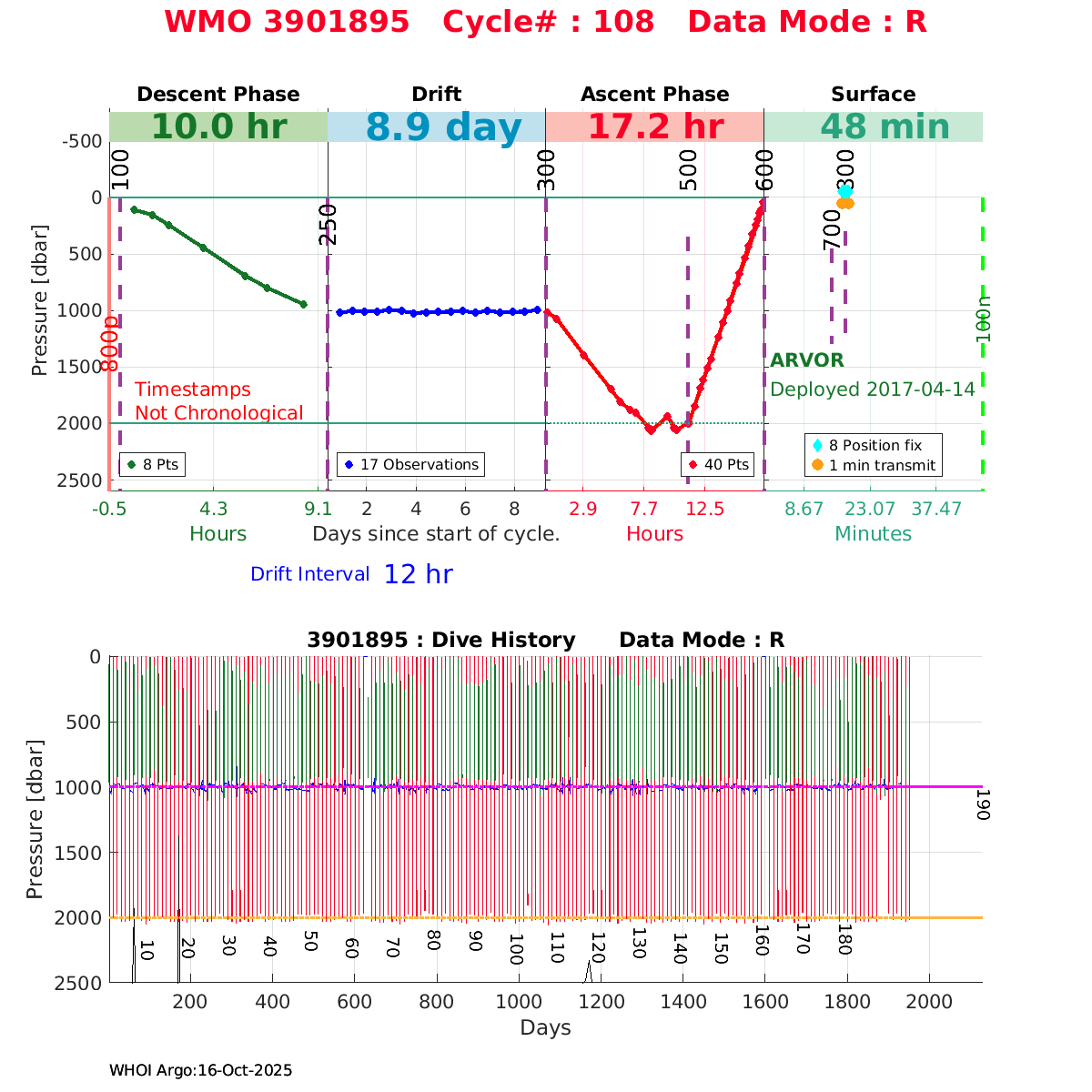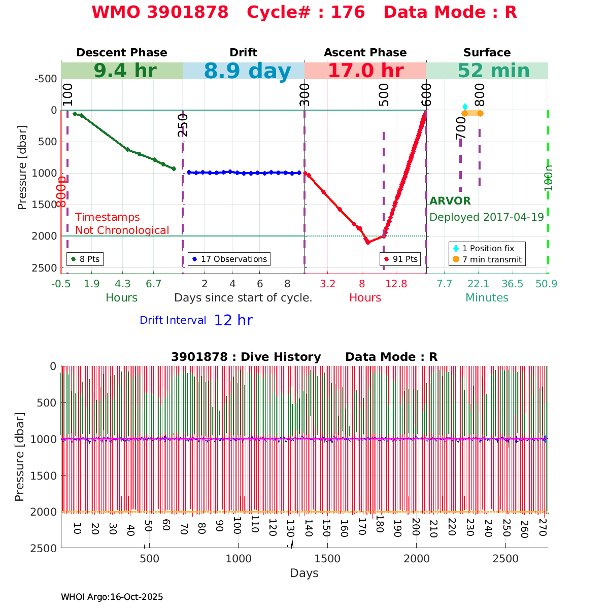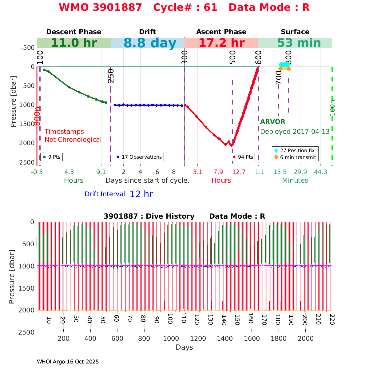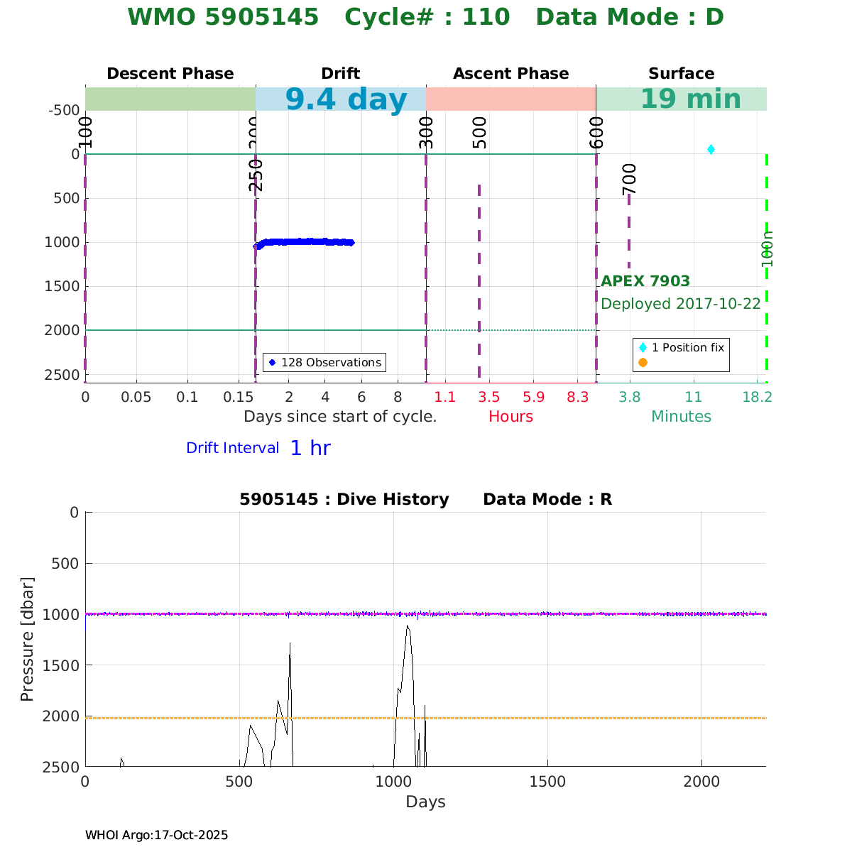 | WMO: #1901881 DAC: bodc PI: Jon Turton APEX: #7579 DRUCK_2900PSIA: #10083576 SBE41: #7732 Altimeter Comparison (IFREMER) EuroArgo Link | ![]() |