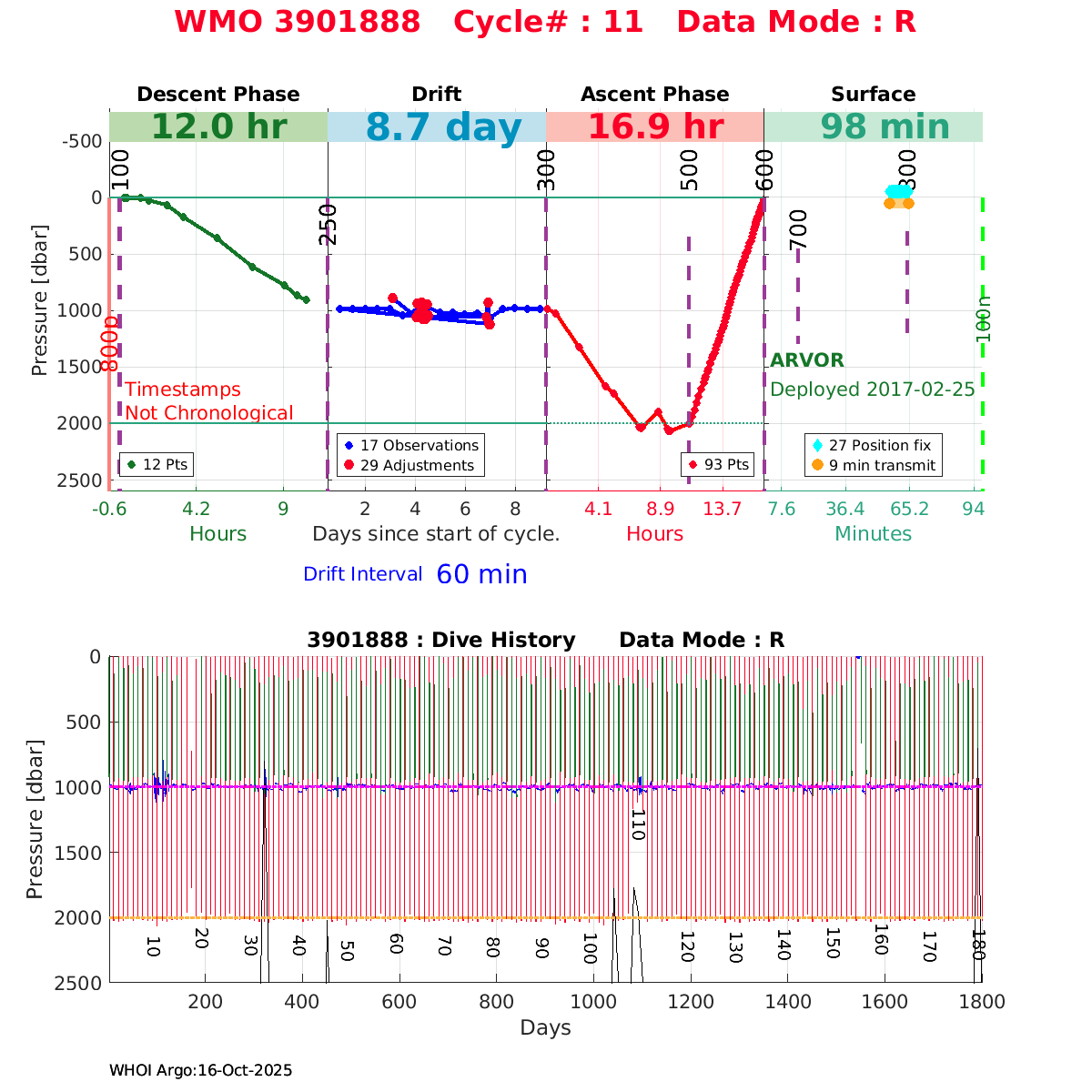 | WMO: #5905145 DAC: aoml PI: STEPHEN RISER APEX: #7903 SBE41CP: #8830 DRUCK_2900PSIA: #10387713 Altimeter Comparison (IFREMER) EuroArgo Link | ![]() |