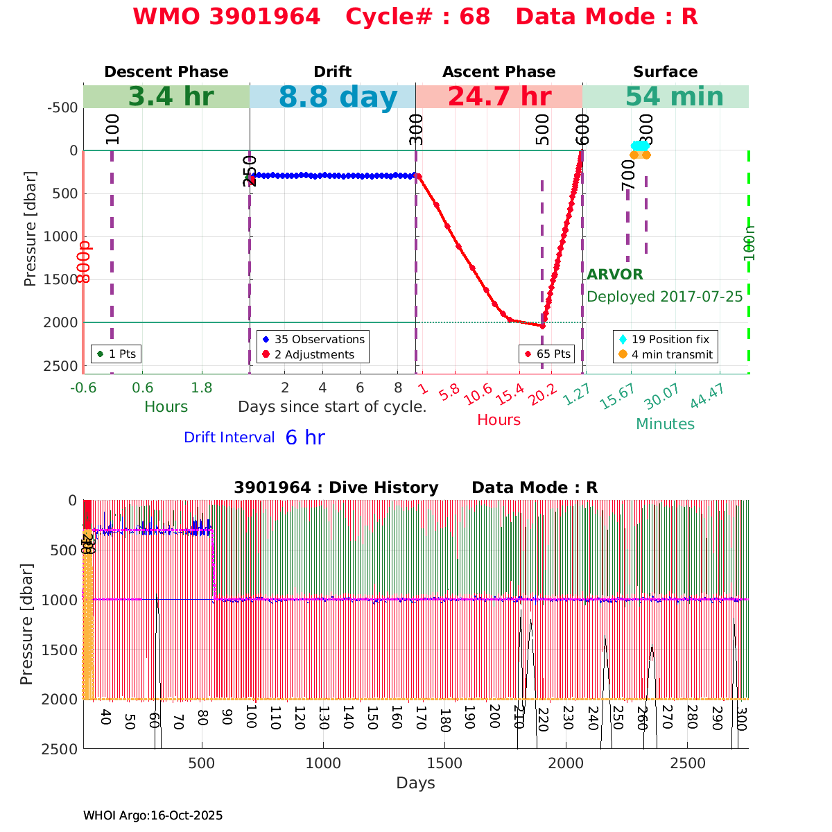 | WMO: #3901606 DAC: coriolis PI: Birgit KLEIN ARVOR: # DRUCK_2900PSIA: #10300440 SBE41CP: #8570 Altimeter Comparison (IFREMER) EuroArgo Link | ![]() |