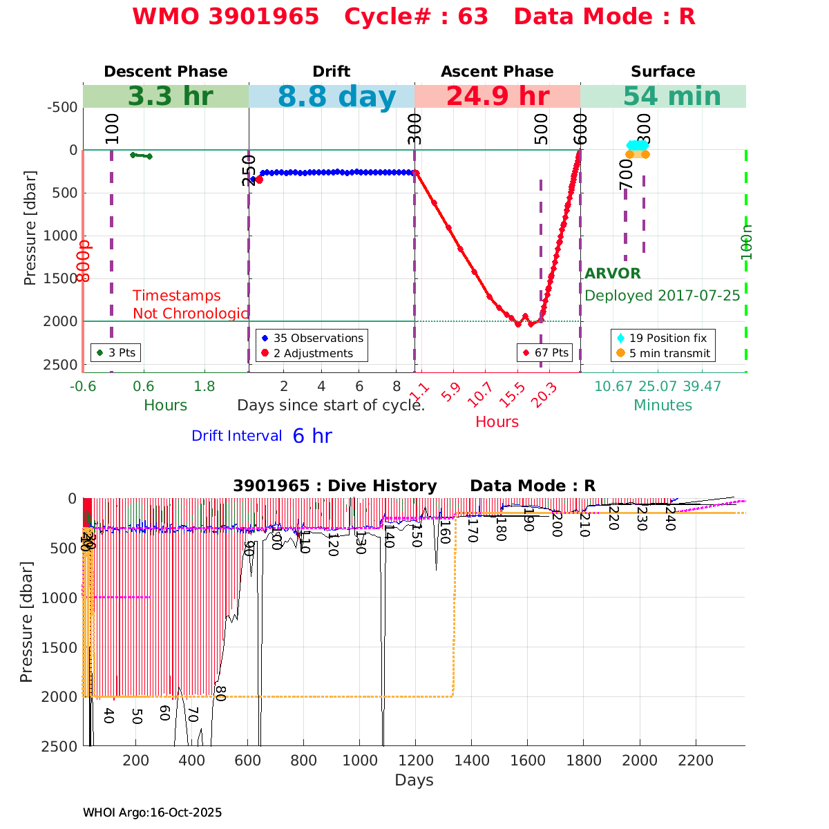| WMO: #3901539 DAC: bodc PI: Jon Turton APEX: #8075 DRUCK_2900PSIA: #10449836 SBE41: #9250 Altimeter Comparison (IFREMER) EuroArgo Link | ![]() |